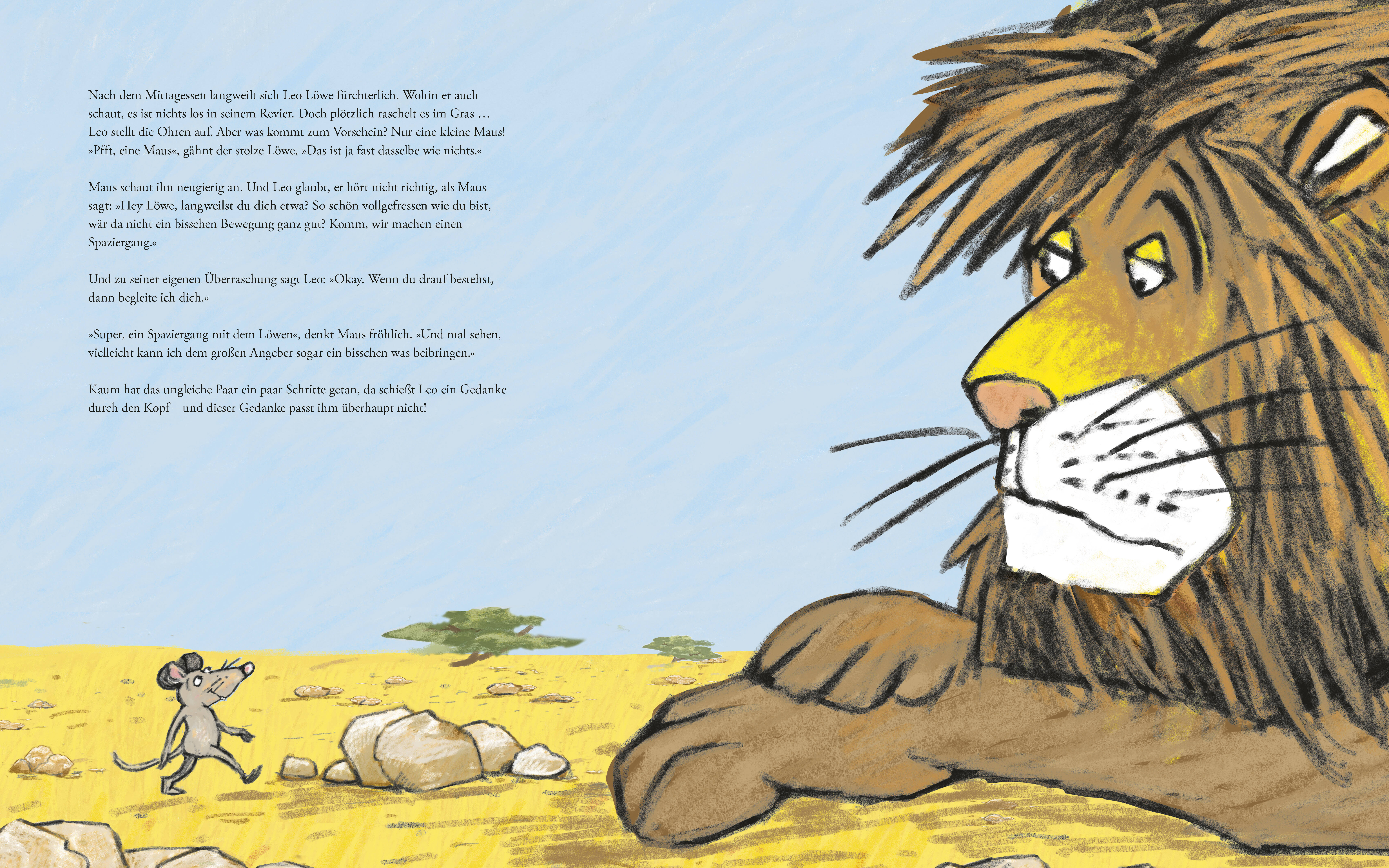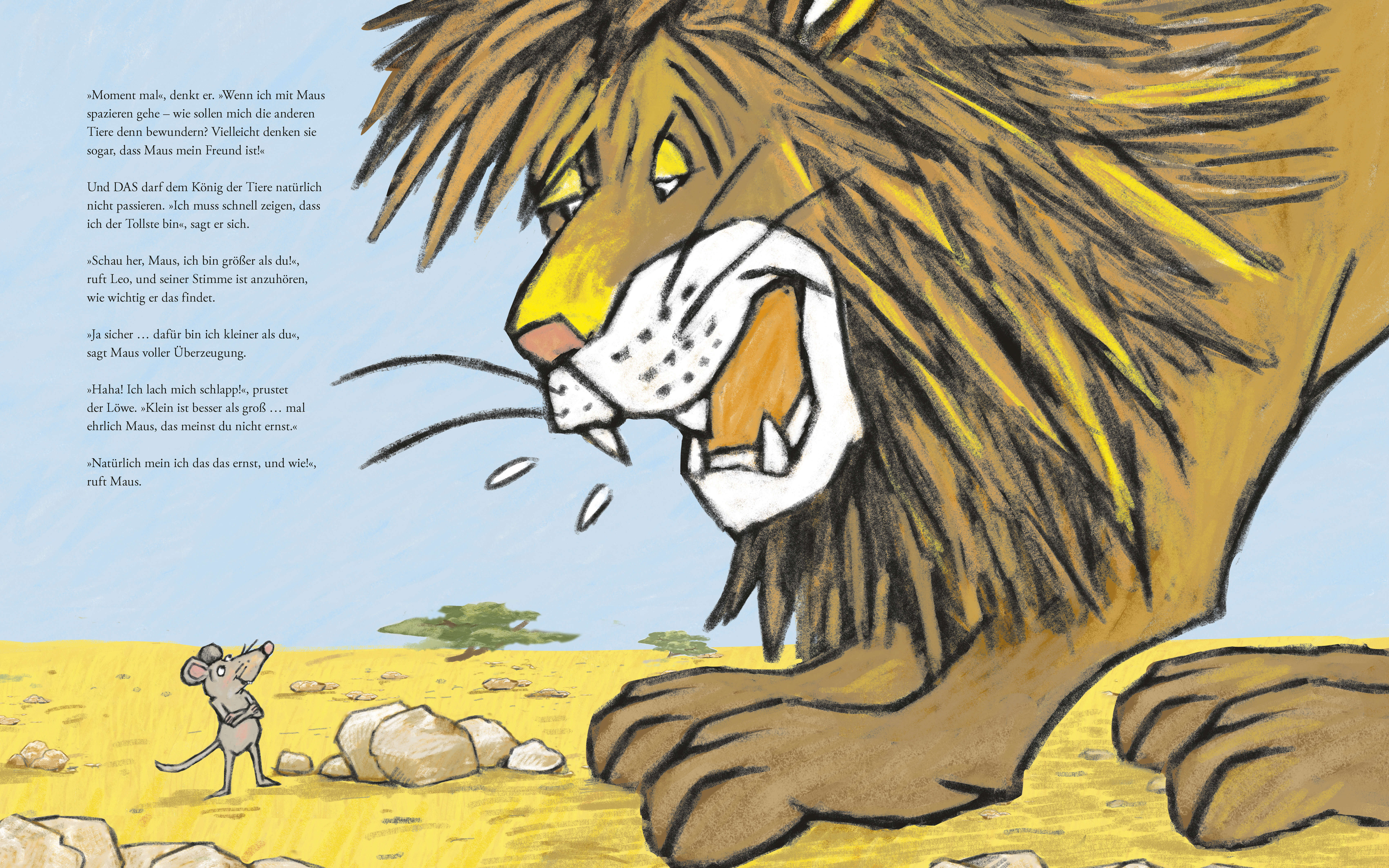 Ungleiches Duo: Großer Löwe und kleine Maus dieses Bilderbuch zeigt, dass alle auf ihre Weise richtig stark sind! Löwe Leo langweilt sich. Wie passend, dass da gerade eine kleine Maus vorbeikommt, vor der er ordentlich angeben kann. Leo versucht die Maus davo...