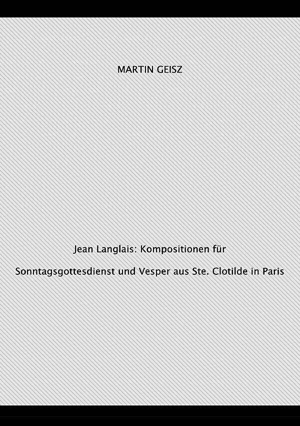 Diese Veröffentlichung will auf Kompositionen für Gottesdienste (Messe und Vesper) für Orgel und/oder Harmonium von Jean Langlais (1907-1991) aufmerksam machen. Diese Veröffentlichung will das Wirken von Jean Langlais (1907-1991) - (Titulaire) Organist in Sain...