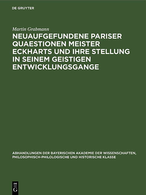 Frontmatter -- I. Einleitung -- II. Handschriftliche Überlieferung -- III. Literarhistorische Feststellungen und Untersuchungen über die neuaufgefundenen Pariser lateinischen Quaestionen Meister Eckharts und über eine gegen Eckhart gerichtete Quaestio des Fran...
