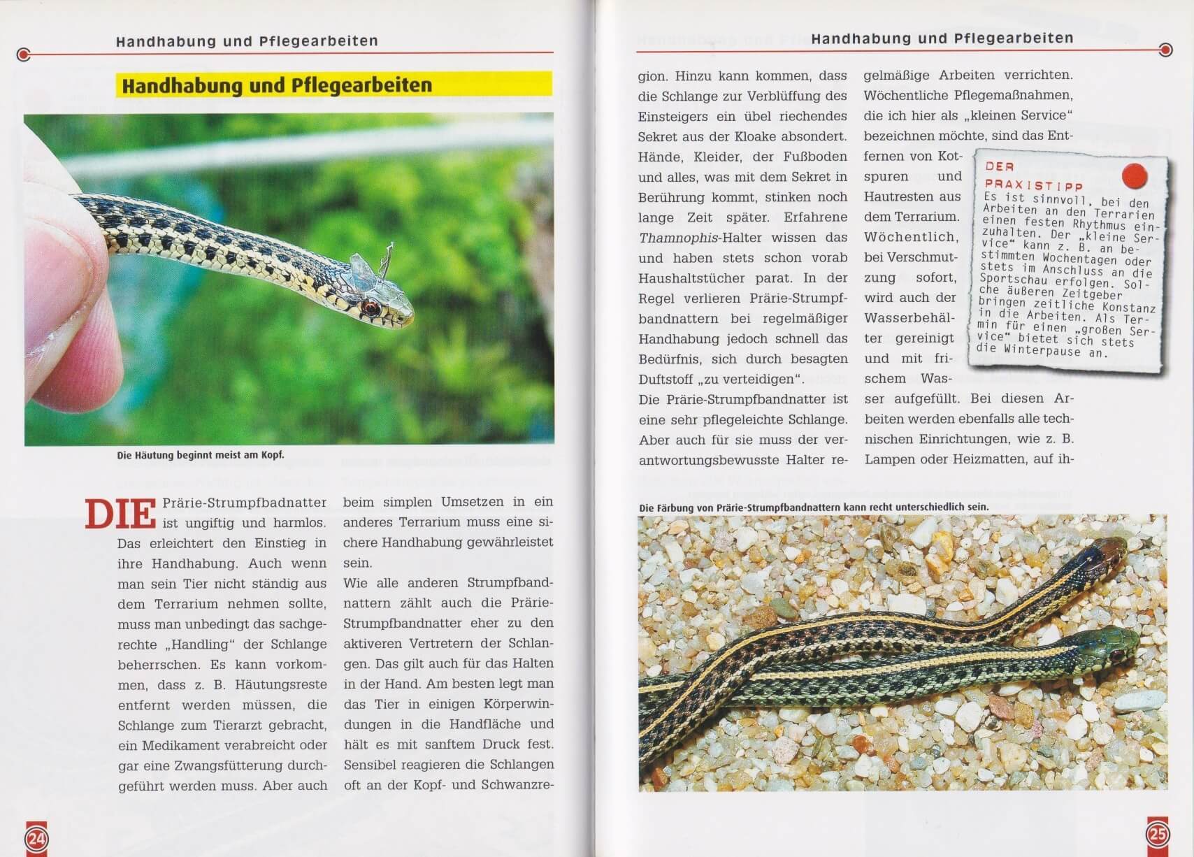Die Prärie-Strumpfbandnatter (Tiefland-Strumpfbandnatter) hat ein sehr aufgewecktes Wesen. Sie zeigt sich im Terrarium meist besonders aktiv und interessiert. Dabei bleibt sie bei der Handhabung sehr ruhig und neigt nicht zum Beißen. Dieser Band aus der Reihe ...