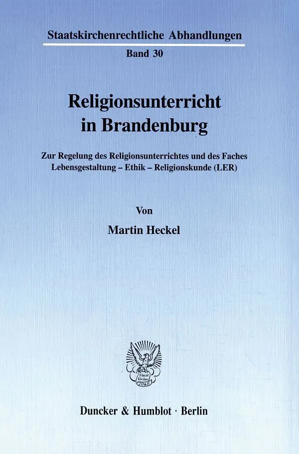 Bekanntlich hat das Land Brandenburg als einziges deutsches Bundesland den Religionsunterricht an den öffentlichen Schulen durch sein Schulgesetz vom 12.4.1996 abgeschafft und durch einen bekenntnislosen staatlichen Pflichtunterricht in »Lebensgestaltung-Ethik...