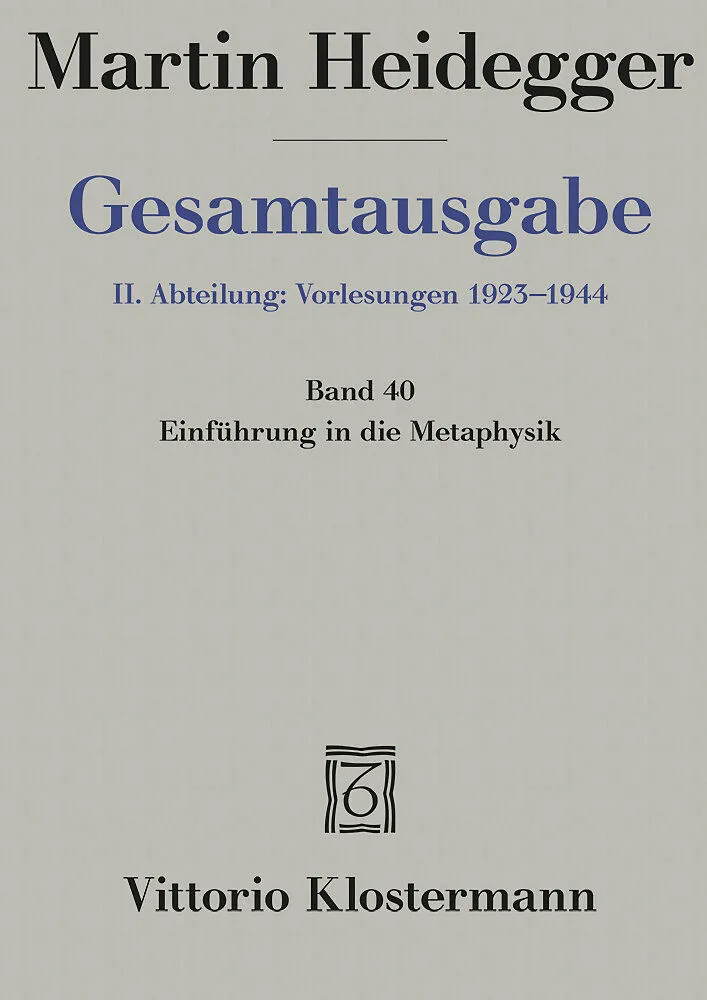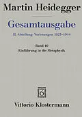 Die 1935 gehaltene und 1953 von Heidegger selbst veröffentlichte Vorlesung "Einführung in die Metaphysik" enthält unverändert auch in der Neuedition den Text, den Heidegger selbst für die Publikation vorgesehen hat. Neu hinzugekommen ist lediglich Heideggers e...