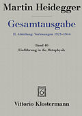 Die 1935 gehaltene und 1953 von Heidegger selbst veröffentlichte Vorlesung "Einführung in die Metaphysik" enthält unverändert auch in der Neuedition den Text, den Heidegger selbst für die Publikation vorgesehen hat. Neu hinzugekommen ist lediglich Heideggers e...