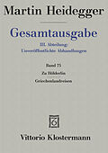 Band 75 der Gesamtausgabe enthält nachgelassene Arbeiten zu Hölderlin, zum Teil nicht abgeschlossen oder im Entwurfstadium verblieben; ferner zwei Niederschriften zu Griechenlandreisen, die "in der Zwiesprache mit Hölderlins Dichtung" unternommen wurden. Bis auf den Text der ersten Griechenlandreise, der seit 1989 unter dem Titel "Aufenthalte" als Einzelpublikation vorliegt, handelt es sich um Erstveröffentlichungen. Niederschriften zu Hölderlins "Germanien", zu "Andenken" und "Der Ister", über welche Hymnen Heidegger schon im Druck vorliegende Vorlesungen gehalten hat, zeigen, wie lange ihn diese Dichtungen intensiv beschäftigt haben. Aufzeichnungen und Entwürfe zu "Brod und Wein", "Ermunterung", "Dichterberuf", "Mnemosyne", zu den "Empedokles"-Bruchstücken und den Übersetzungen der Pindarfragmente setzen zu jeweils besonderen Ausblicken an, oft mit Verweisen auf eine Vorlesung oder eine Hölderlin-Erläuterung. Eine der bedeutendsten Arbeiten Heideggers zu Hölderlin ist der Dialog "Das abendländische Gespräch", in dem er von der Hymne "Der Ister" aus - viele andere Gedichte mitsprechen lassend - das geschickliche Wort der Dichtung Hölderlins zu erhellen unternimmt. Aufzeichnungen unter dem Titel "Die Fuge der Huld. Der Dank" stehen im Gedachten und in der Form den "Beiträgen zur Philosophie" (HGA Bd. 65) nahe; sie deuten auf die innere Einheit des "Ereignis"-Gedankens mit Heideggers Verständnis Hölderlins. In den Griechenlandreisen beruft Heidegger den griechischen Anfang der abendländischen Geschichte mit dem wiederholten Blick auf "die wissenschaftliche Industrialisierung der Welt" (wozu der "Tourismus" gehört), deren Menschen "ohne Göttliches. ans eigene Treiben geschmiedet allein. viel arbeiten mit gewaltigem Arm, rastlos", wie er Hölderlin zitiert.