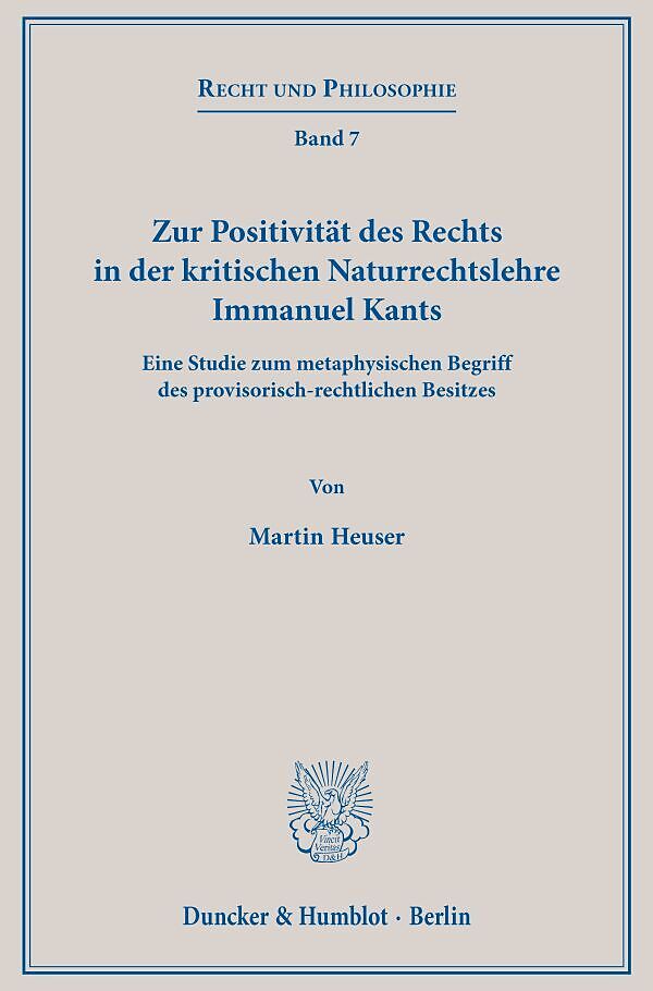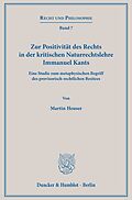 Die Arbeit vergewissert sich der Bedeutung der teils willkürlichen, teils notwendigen Positivität des äußeren Rechts nach der Rechtslehre Kants. Sie erschließt sich deshalb die in diesem Werk aufgewiesene Wirklichkeit des praktischen Begriffs der Freiheit des ...