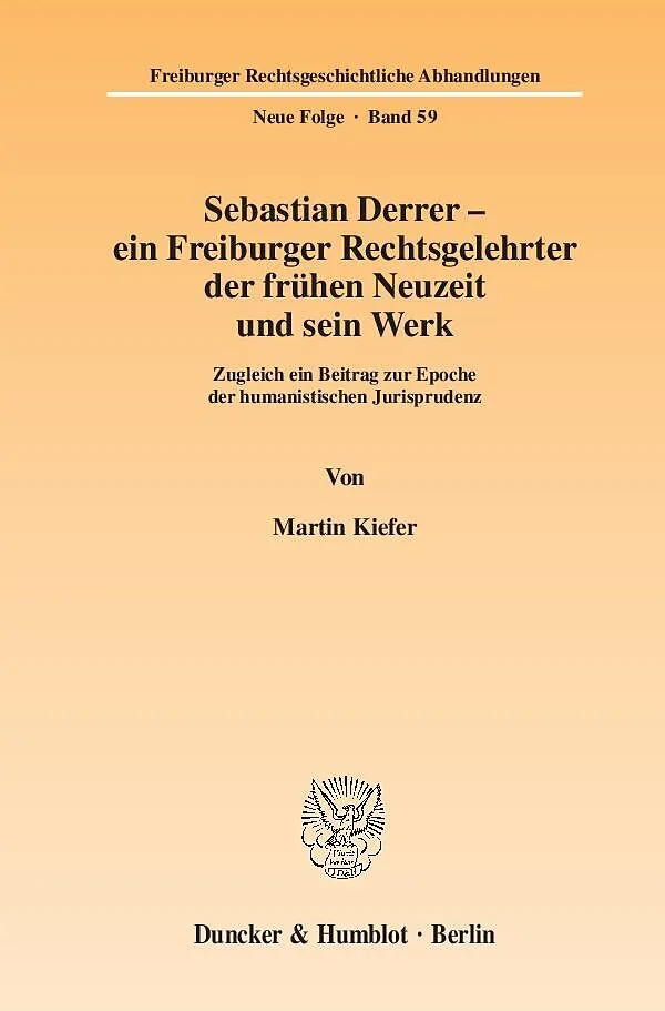 Martin Kiefer untersucht Leben und Werk des bislang kaum bekannten Humanistenjuristen Sebastian Derrer (ca. 1495 bis 1541). Als Schüler und Lehrstuhlnachfolger des berühmten Rechtsgelehrten Ulrich Zasius in Freiburg setzte sich Derrer zum Ziel, dem römischen R...
