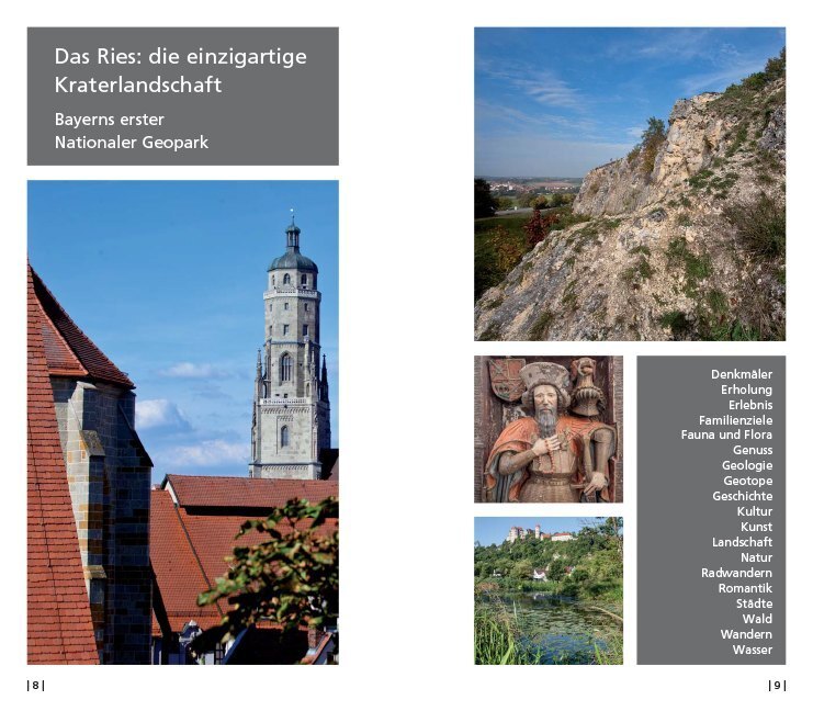 Deutschlands einzigartige Kraterlandschaft: Natur und Kultur im Nationalen Geopark Ries Felsen, Zeugenberge und Höhlen, Wacholderheiden und Buchenwälder machen die Landschaft im Rieskrater und an den Riesrändern spektakulär. Schaurig-schöne Ruinen, Burgen und ...Deutschlands einzigartige Kraterlandschaft: Natur und Kultur im Nationalen Geopark Ries Felsen, Zeugenberge und Höhlen, Wacholderheiden und Buchenwälder machen die Landschaft im Rieskrater und an den Riesrändern spektakulär. Schaurig-schöne Ruinen, Burgen und Schlösser, Dorfkirchen und Klöster, die Spuren von Steinzeitmenschen, Kelten und Römern, blutigen Schlachten und judischen Gemeinden sind Ziele im Nationalen Geopark Ries. In den Altstädten von Nördlingen, Donauwörth, Oettingen, Harburg, Wemding, Monheim, Treuchtlingen und Bopfingen, in Residenzorten wie Wallerstein, Baldern, Amerdingen und Dischingen, in Klöstern wie denen in Maihingen, Kirchheim am Ries, Mönchsdeggingen und Heidenheim reiht sich Denkmal an Denkmal und Kunstwerk an Kunstwerk. Dieser Reisefuhrer stellt die Sehenswurdigkeiten vor. Bauten im Geopark erinnern an Ritter, Grafen und Fursten, Bauern und Burger, Handwerker und Kunstler, Mönche, Nonnen und Hexenjäger. Der Geopark Ries liegt teils im bayerischen Schwaben, teils in Mittelfranken und teils in Wurttem berg: Diese landschaftliche Vielfalt steigert dort den kulturellen Reichtum. Zwölf Kapitel leiten auch zu Geotopen, Lehrpfaden und Aussichtspunkten.