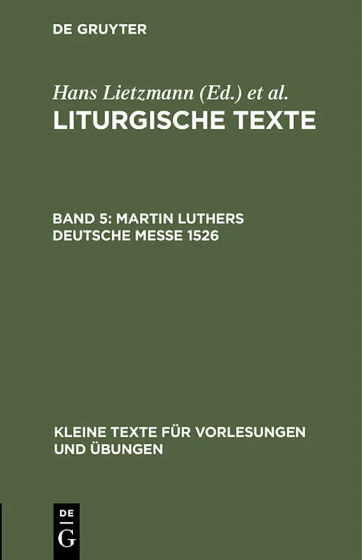 Frontmatter -- LITURGISCHE TEXTE V MARTIN LUTHERS DEUTSCHE MESSE 1526 HERAUSGEGEBEN -- Backmatter