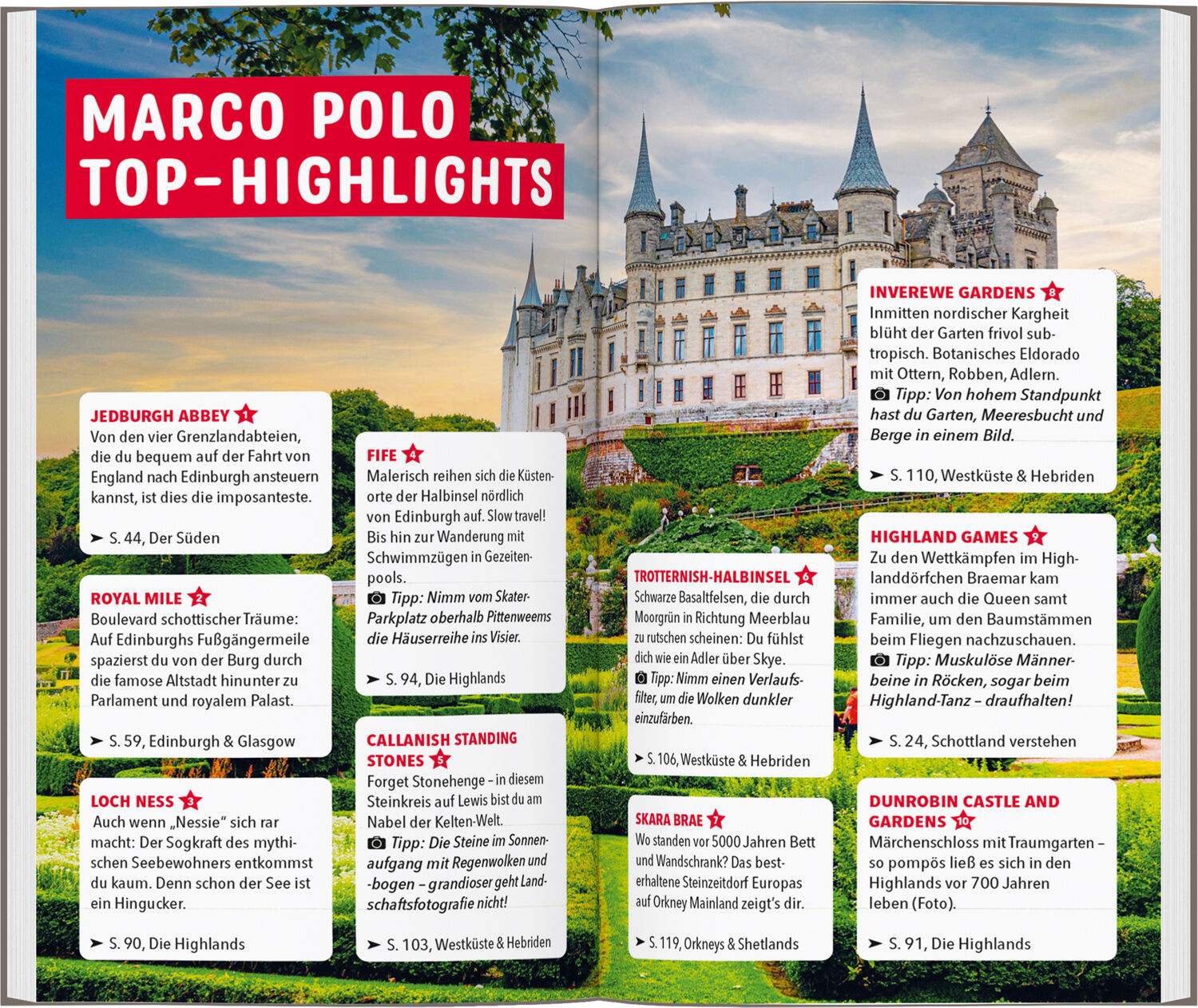 Wo Kilt Kult ist: Mit dem MARCO POLO Reiseführer durch Schottland Du liebst weite Landschaften, Männer in Kilts und sagenumwobene Seeungeheuer? Dann bist du in Schottland richtig! Hier trifft idyllische Ruhe auf urig-skurrile Bräuche, wenn mitten in den grüne...