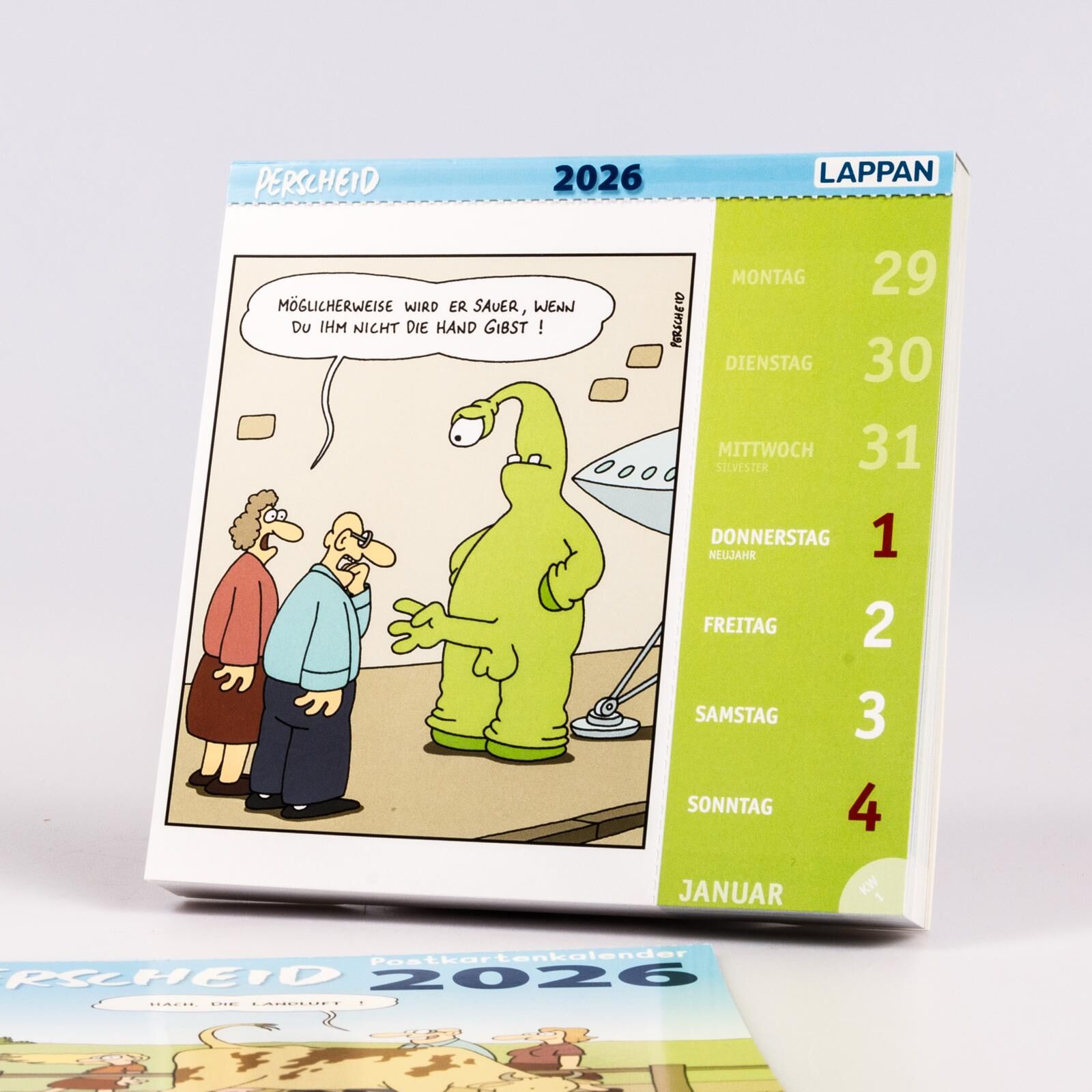 2026?! Da hilft nur schwarzer Humor! Perscheids Humor ist skurril, gnadenlos und hart am Abgrund - kurzum: der perfekte Begleiter um das Jahr 2026 zu überstehen! Zum Hinstellen oder Aufhängen. Mit 53 heraustrennbaren Postkarten zum Verschicken, Verschenken un...