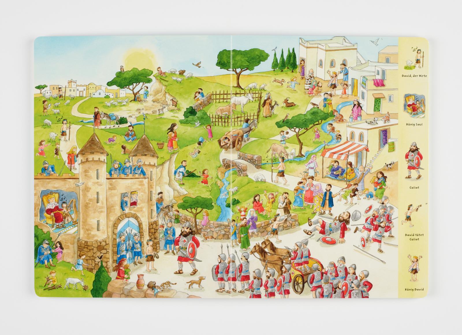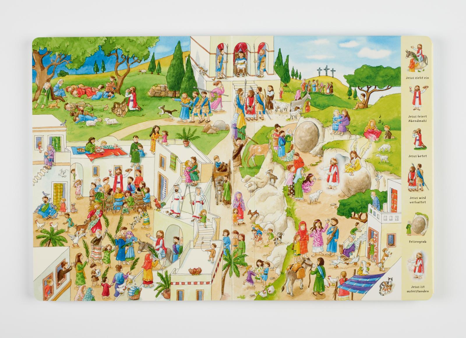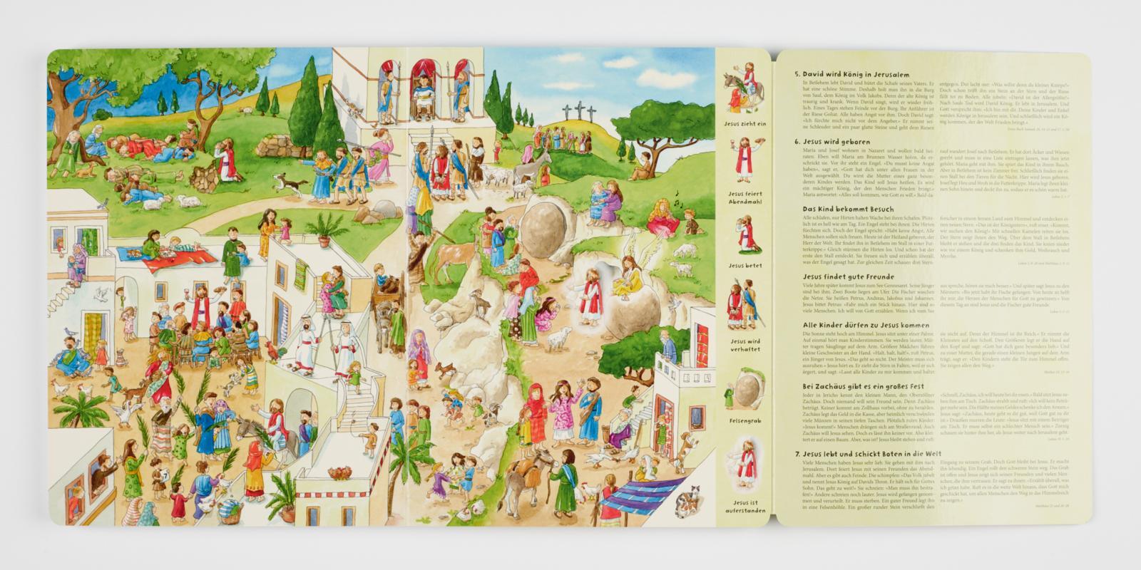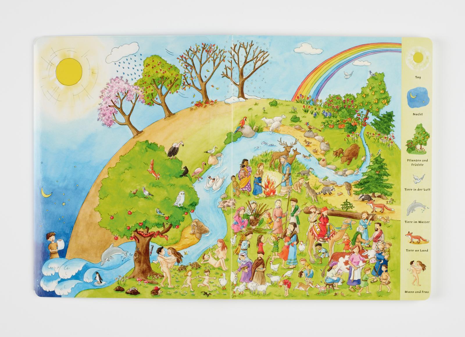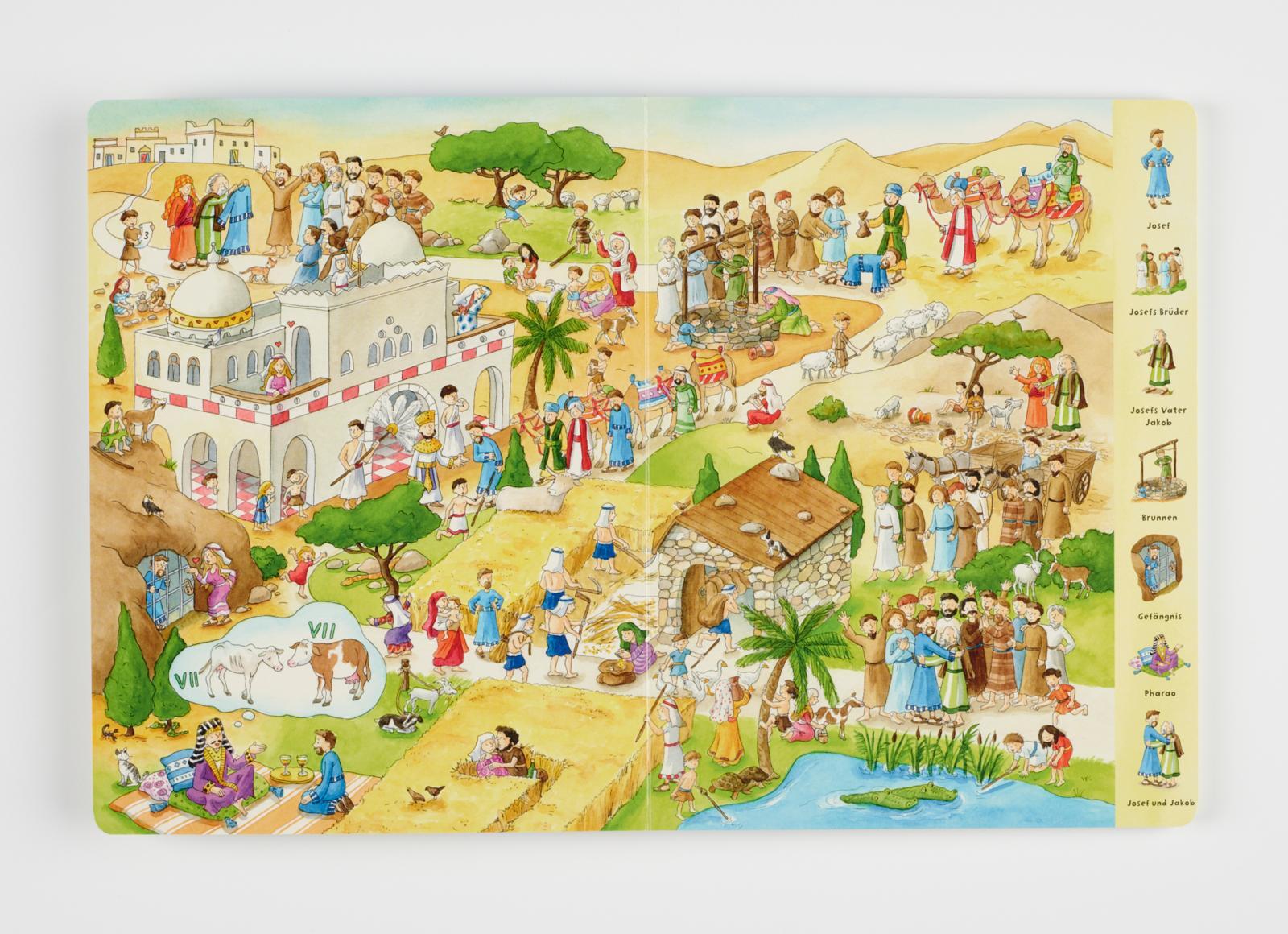 Ein Bibel-Wimmelbuch für Kinder ab 2 Jahren mit Suchleisten und Ausklappseiten. Die schönsten und bekanntesten Geschichten in großen, wimmeligen Bildern: von der Schöpfung, der Arche Noah, von Josef, Mose, David, von Weihnachten und Ostern. Und wer mag, kann ...
