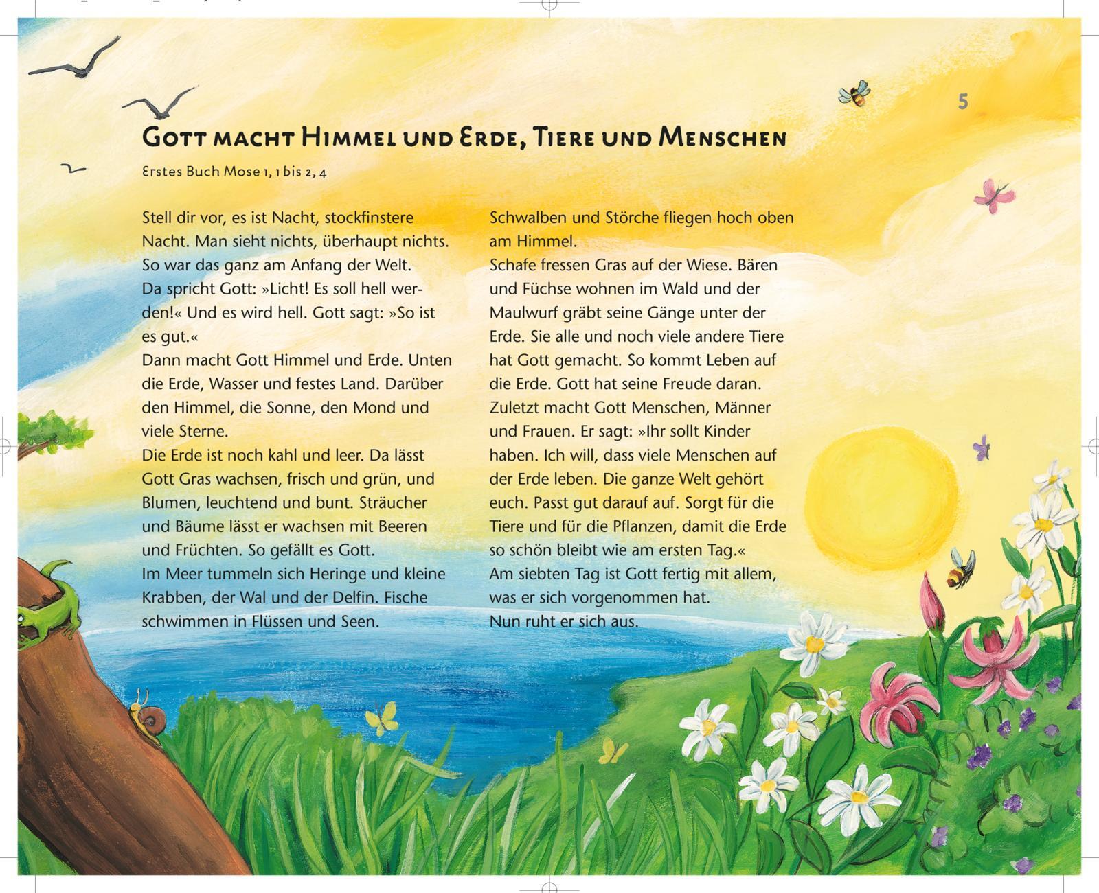 Eine Kinderbibel mit vielen farbigen Bilden zum Vorlesen für Kinder ab 5 Jahren. Über 150 Geschichten aus dem Alten und Neuen Testament, unter anderem: Schöpfungsgeschichte, Arche Noah, Mose, Weihnachtsgeschichte und Ostergeschichte Die ganze Geschichte Gotte...
