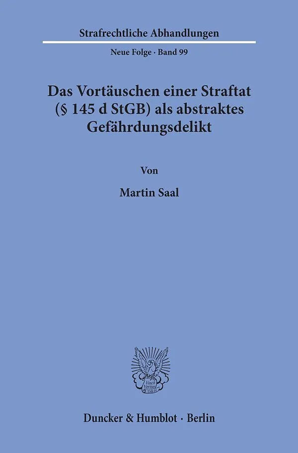 Das Vortäuschen einer Straftat (§ 145 d StGB) als abstraktes Gefährdungsdelikt.