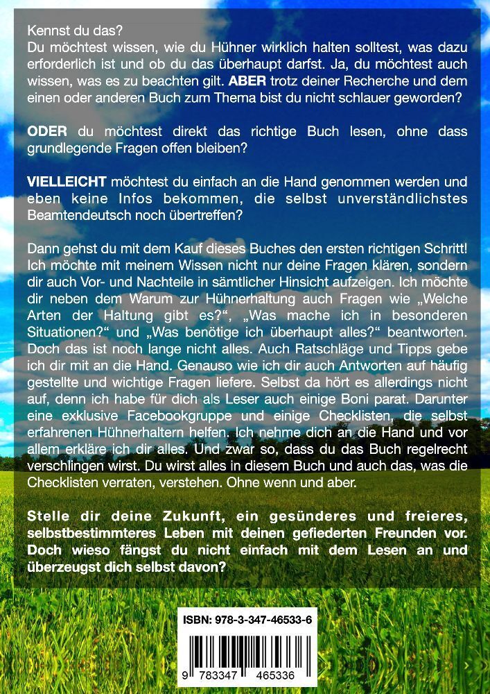 Bei diesem Buch handelt es sich um ein Buch für die ganze Familie und es klärt dich über einiges im Bereich Ernährung, Hühnerhaltung, "Fleischproduktion", etc. auf. Hinzu kommen die Unterschiede der Haltungsformen (Bio, Bodenhaltung, etc.) und der Definition e...