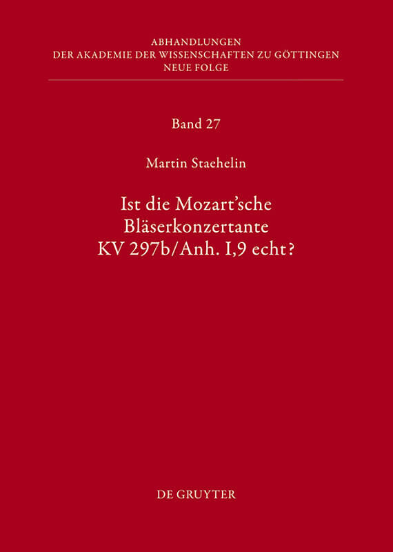 Staehelin's study addresses the question of the authenticity of the Sinfonia Concertante in E-flat major, a work that has been attributed to Mozart. This composition was found as part of the legacy of Mozart's biographer Jahn, and has always been identified w...