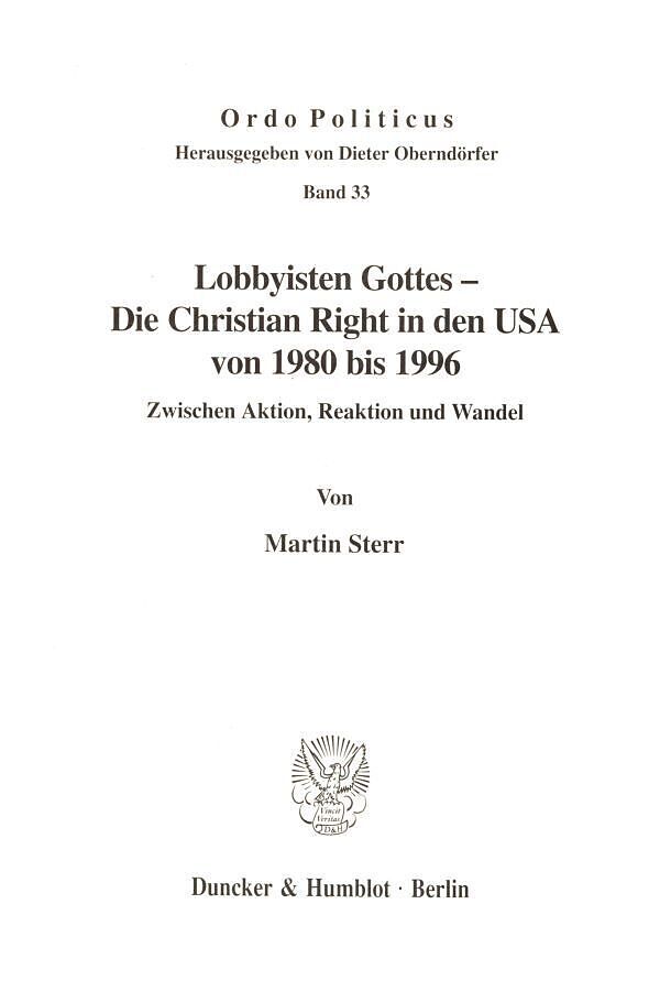 Anfang der 80er Jahre wurden die Vereinigten Staaten durch das massive politische Auftreten von religiös-konservativen Christen aufgeschreckt. Diese Christian Right war mit dem Anspruch angetreten, die Interessen einer »Moral Majority« (dt. moralischen Mehrhei...