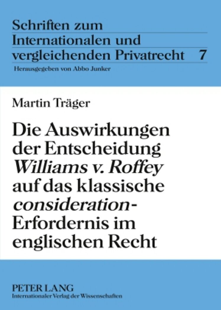 Die Entscheidung Williams v. Roffey ist die wohl interessanteste Neuerung im Bereich der englischen consideration -Lehre der letzten Zeit. Ihre Folgen sind bis heute strittig und ungeklärt. Vor diesem Hintergrund hat sich der Verfasser das Ziel gesetzt, die vi...