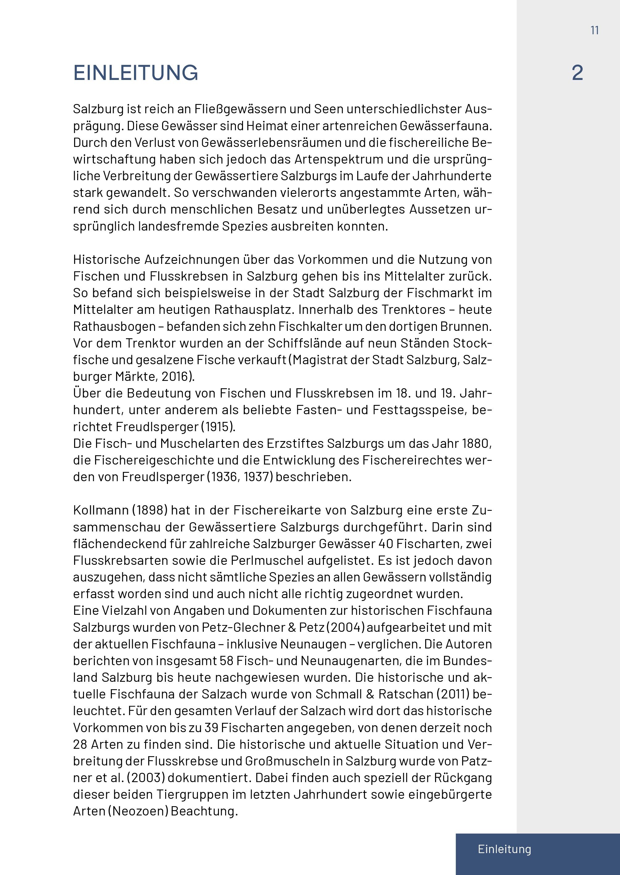 Mehr als Karpfen und Forellen Salzburgs Flüsse, Bäche und Seen sind Heimat einer artenreichen Fauna. Durch den Verlust von Lebensräumen und die fischereiliche Bewirtschaftung hat sich jedoch das Spektrum der Gewässertiere im Laufe der Jahrhunderte stark gewand...