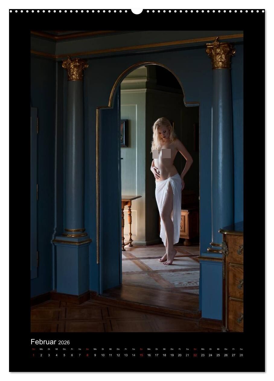 Schlossdamen - Aktbilder in historischen Räumen (Wandkalender 2026 DIN A2 hoch), CALVENDO Monatskalender