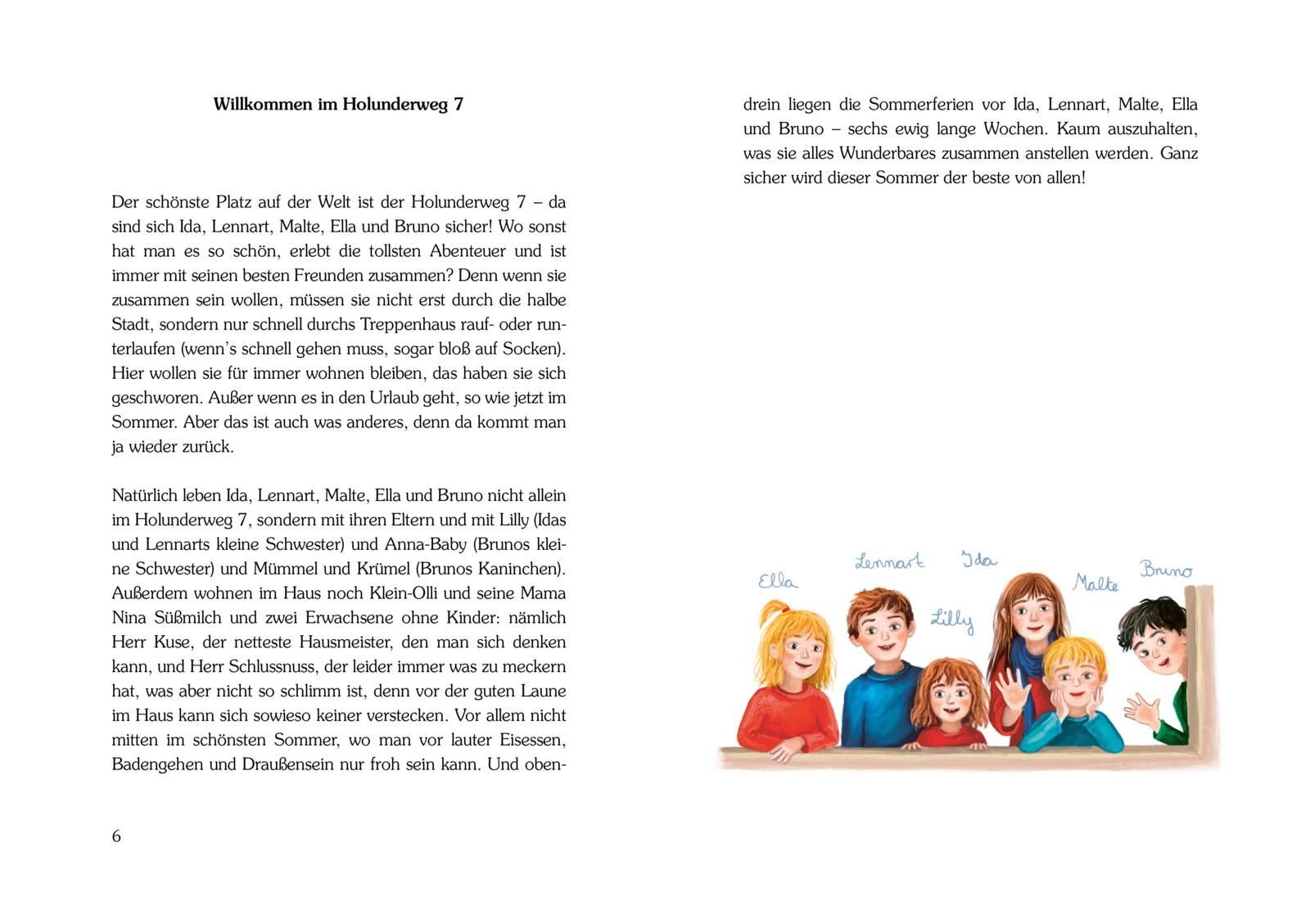 Ein Ferien-Abenteuer aus dem Holunderweg für Kinder ab 6 Jahren. Ida, Lennart, Malte, Ella und Bruno können es kaum erwarten. Endlich Sommerferien! Das Beste daran ist natürlich das Verreisen. Aber dann kommt Papa Rosenbaums Hexenschuss dazwischen. Stattdesse...