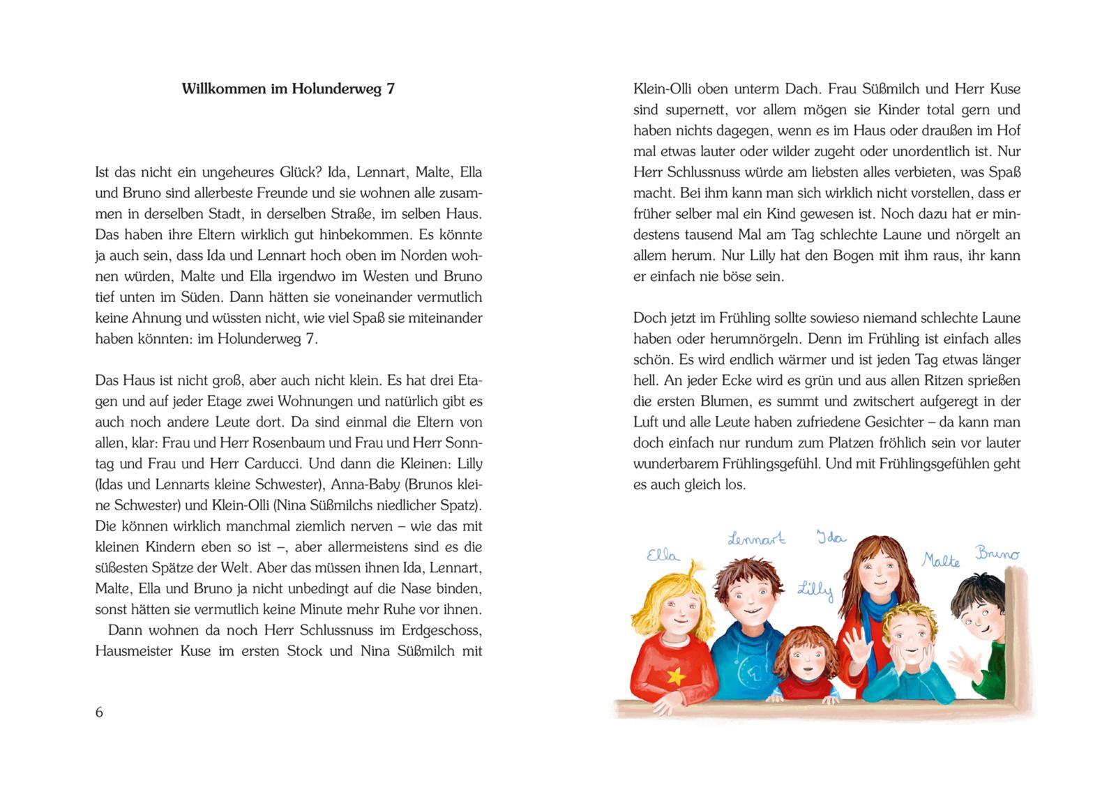 Mehr Glück kann man kaum haben als Ida, Lennart, Ella, Malte und Bruno. Sie sind beste Freunde und wohnen sogar alle im selben Haus: im Holunderweg 7. Es ist Frühling und im Holunderweg ist wieder jede Menge los: ob an Fasching Verwechslungsgefahr besteht, da...