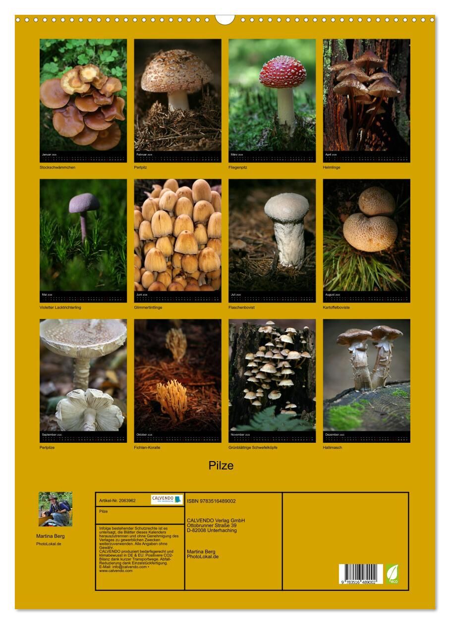 Wandkalender mit 13 faszinierenden farbfotos einheimischer Pilze. Wandkalender mit 13 faszinierenden farbfotos einheimischer Pilze. Hochwertiger Wandkalender mit 12 wunderschönen Bildern. Unsere Umwelt liegt uns am Herzen. Daher verwenden wir ausschließlich FS...