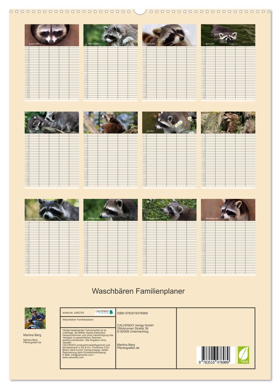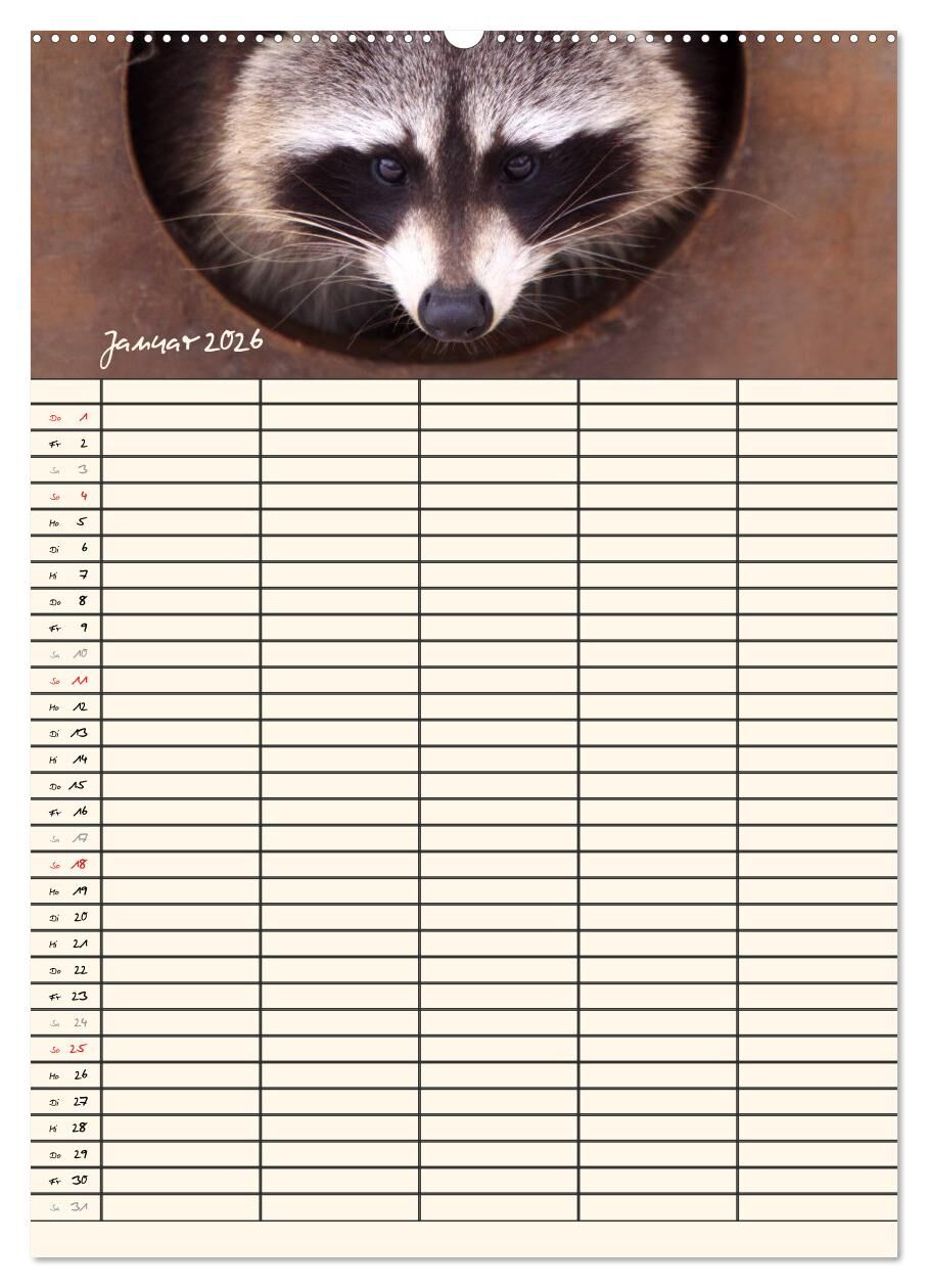 Waschbären Familienplaner (hochwertiger Premium Wandkalender 2026 DIN A2 hoch), Kunstdruck in Hochglanz