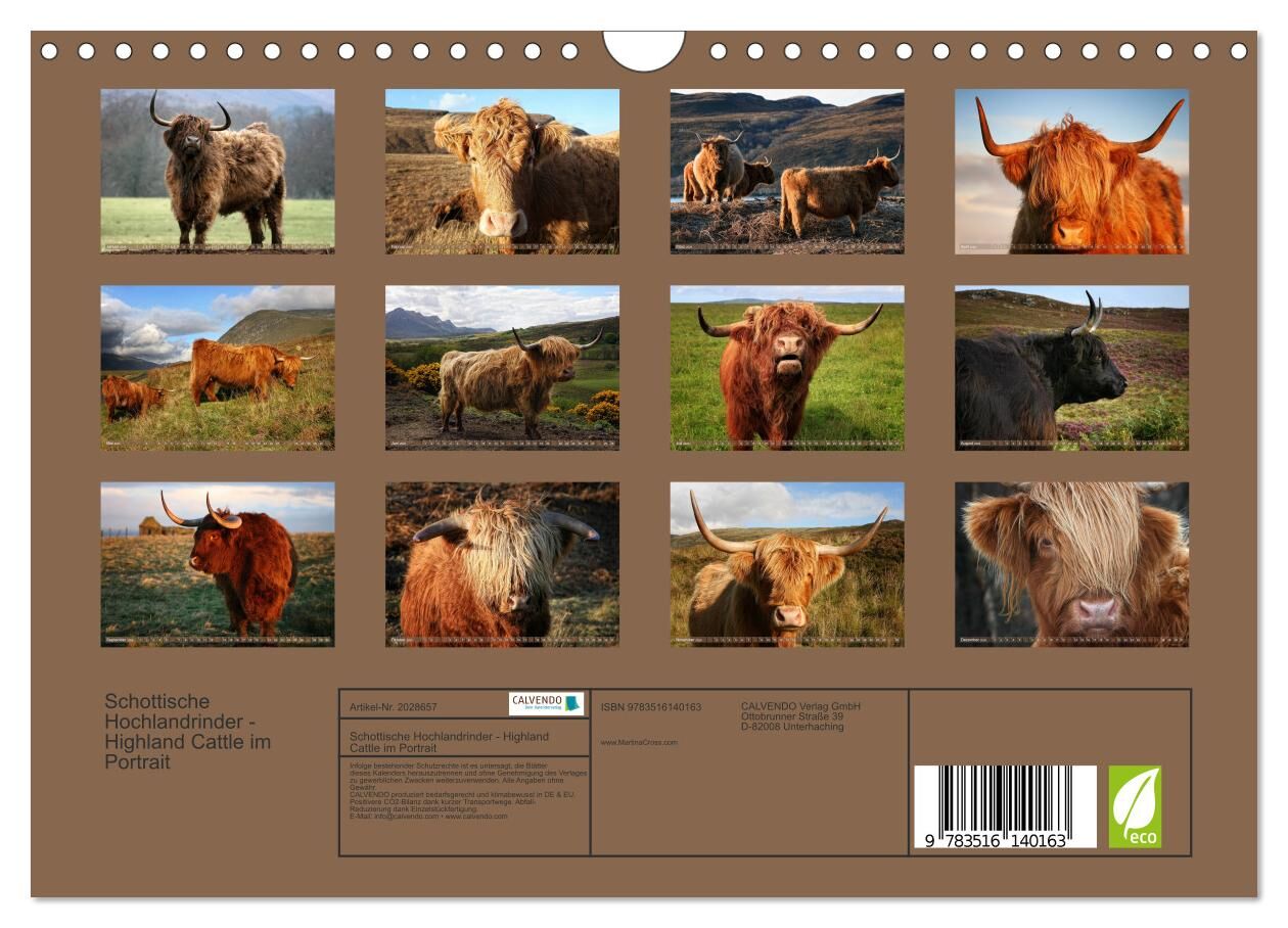 Schottische Hochlandrinder - Highland Cattle im Portrait (Wandkalender 2026 DIN A4 quer), CALVENDO Monatskalender