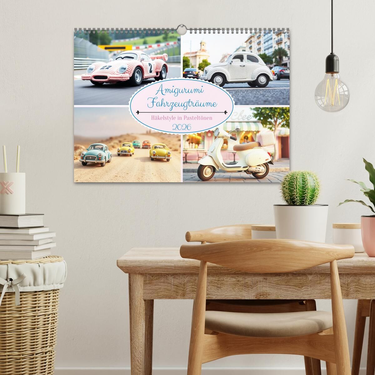Amigurumi Fahrzeugträume - Häkelstyle in Pastelltönen (Wandkalender 2026 DIN A3 quer), CALVENDO Monatskalender