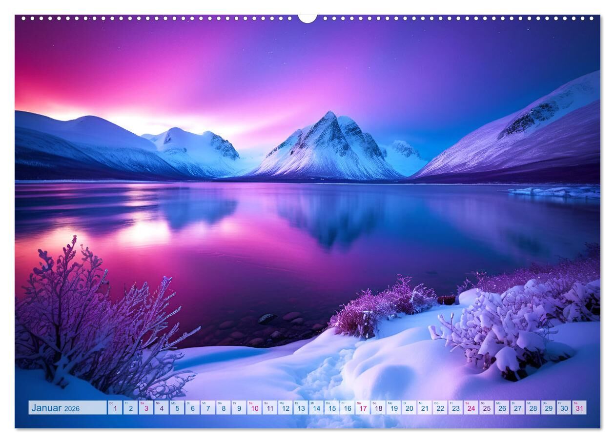 Traumhafte Polarlichter . Licht, Schnee und Eis hoch im Norden (Wandkalender 2026 DIN A2 quer), CALVENDO Monatskalender