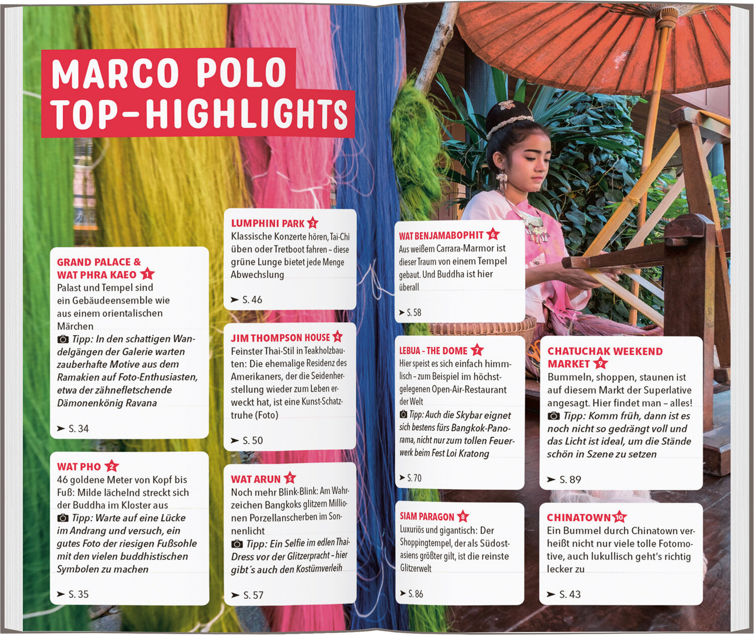 Urlaub zwischen Tradition und Moderne: Mit dem MARCO POLO Reiseführer Bangkok entdecken Eine Megacity zwischen Himmel und Erde, Gestern und Heute: Während oben der Skytrain Touristen und Einheimische in Rekordzeit transportiert, paddeln unten Gemüseverkäuferi...