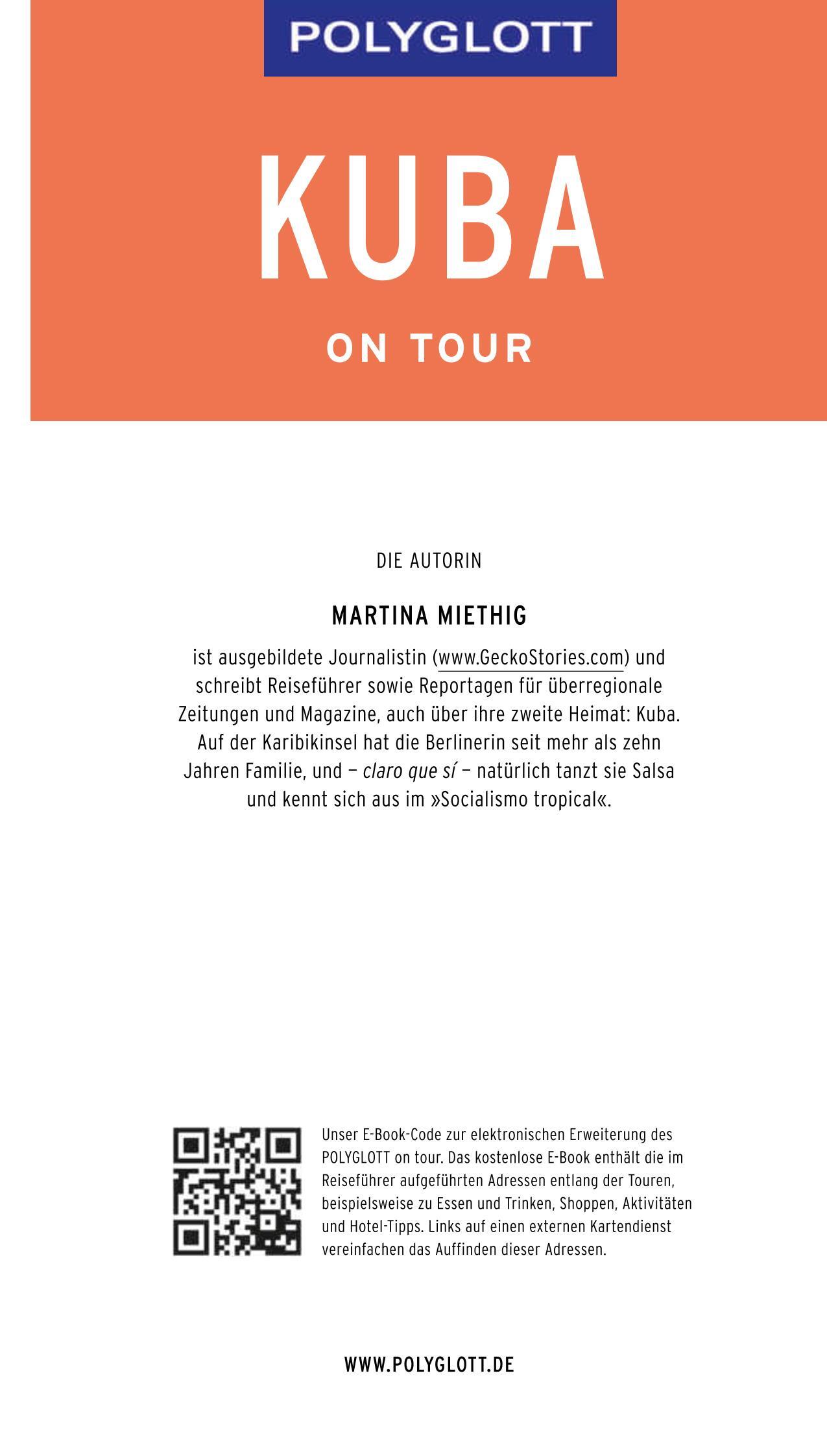 Persönlich & mittendrin! Entspanntes und unabhängiges Reisen mit dem Reiseführer POLYGLOTT on tour Kuba, der Sie direkt ins Leben der Locals eintauchen lässt. Die Autorin Martina Miethig führt auf abwechslungsreichen Touren zu spannenden und außergewöhnlic...