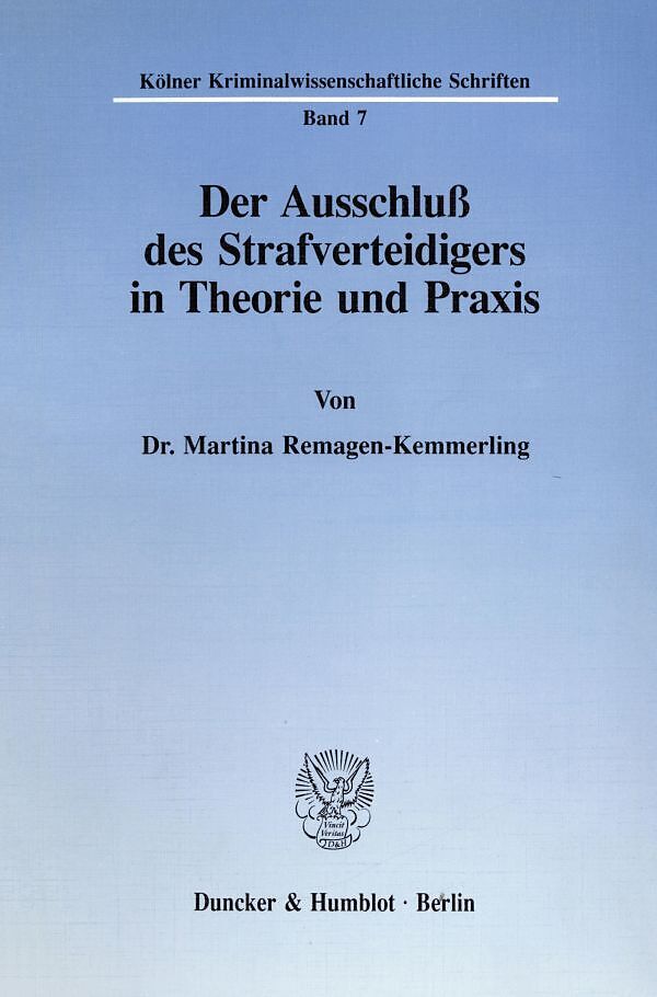 Der Ausschluß des Strafverteidigers in Theorie und Praxis.