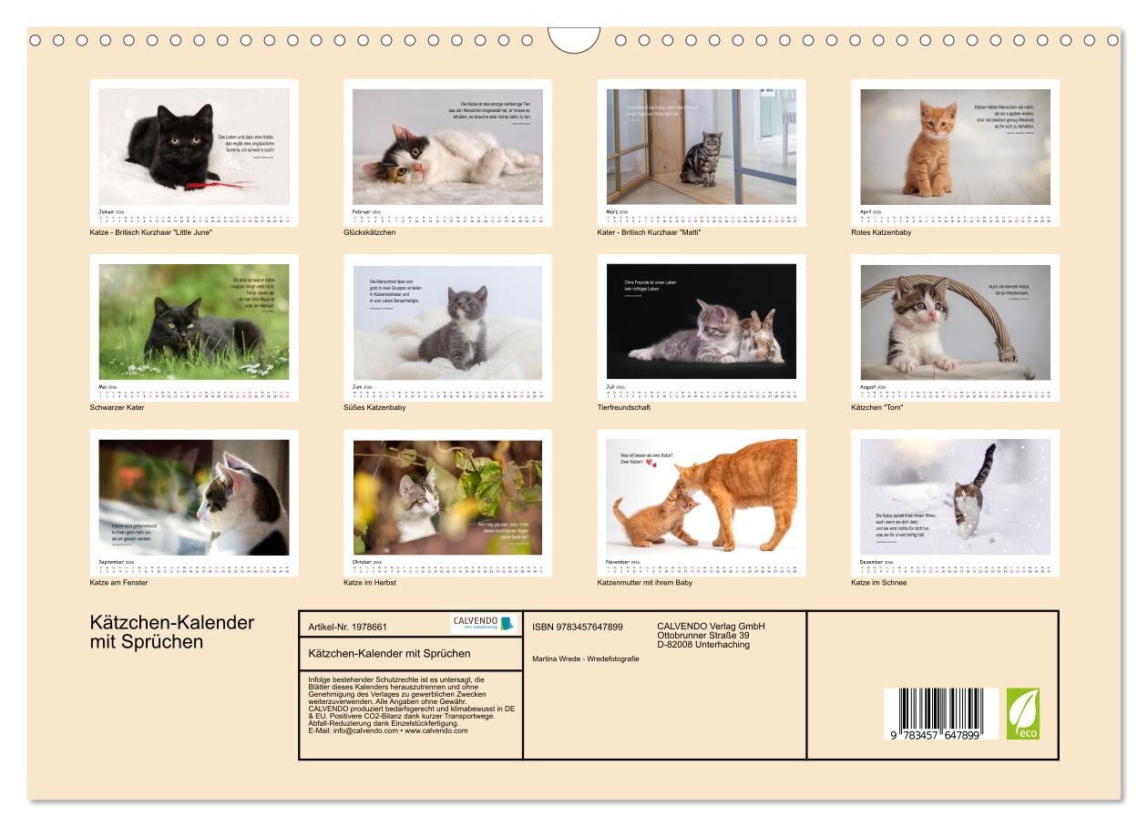 Kätzchen-Kalender mit Sprüchen (Wandkalender 2026 DIN A3 quer), CALVENDO Monatskalender