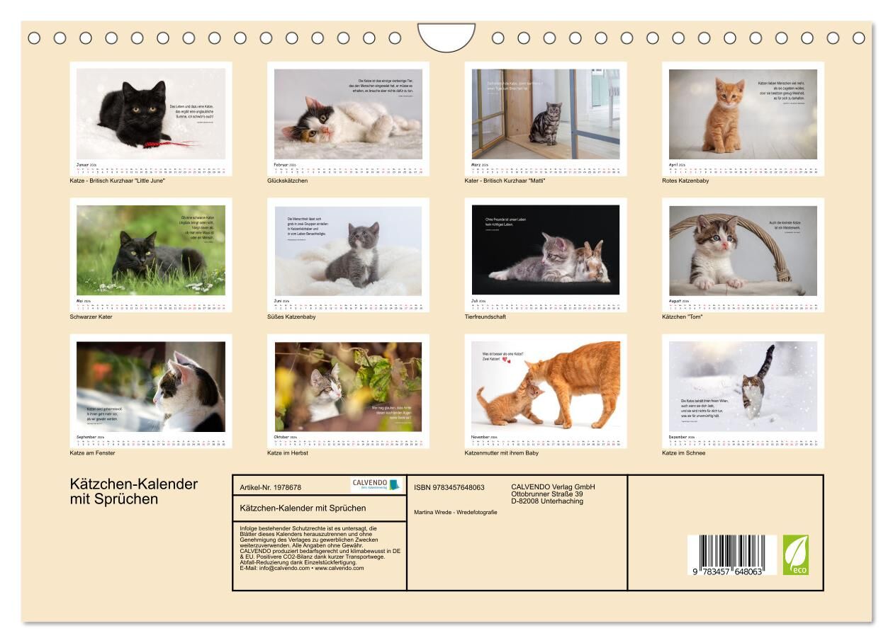 Tauchen Sie ein in die wundervolle und einzigartige Welt der Katzen. Kombiniert mit Zitaten, Weisheiten und Sprüchen wird dieser Kalender zu einem wunderbaren Geschenk für jeden Katzenfreund.