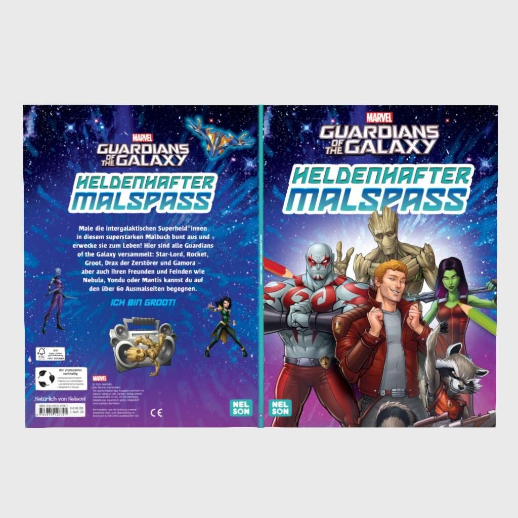 Coole Posen und actiongeladene Szenen mit den MARVEL-Held*innen Guardians of the Galaxy garantieren stundenlangen Ausmalspaß auf mehr als 60 Seiten.