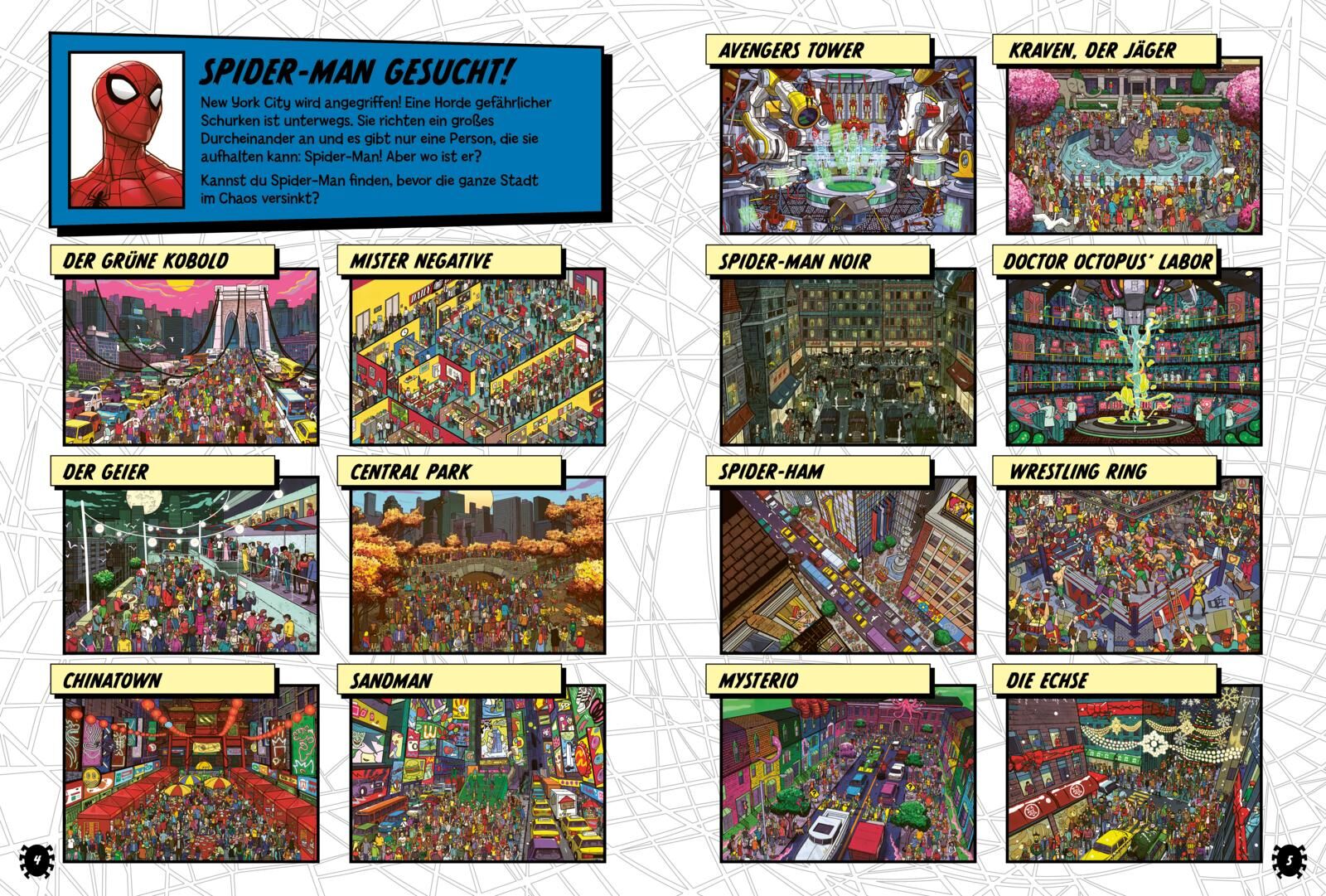 Marvel: Wo ist Spider-Man? Das große Wimmelbuch Spannendes Wimmelbuch für alle Marvel- und Spider-Man-Fans! Spider-Man ist verschwunden! Viele Schurken verursachen Trubel in New York, und es gibt nur eine Person, die sie aufhalten kann Spider-Man! Doch wo ist ...