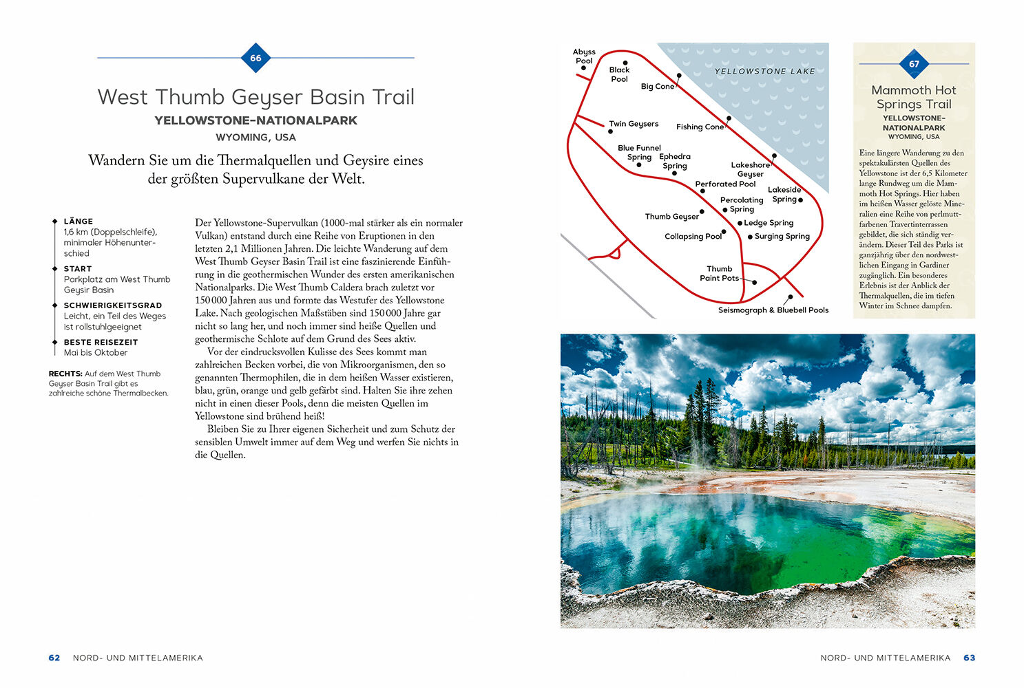 Unterwegs auf 500 unterschiedlich langen Wanderungen für alle Schwierigkeitsgrade in den faszinierendsten Nationalparks der Welt Auf dem Mammoth Hot Springs Trail die heißen Quellen des Yellowstone entdecken, unterwegs auf dem Westweg durch den Nationalpark S...