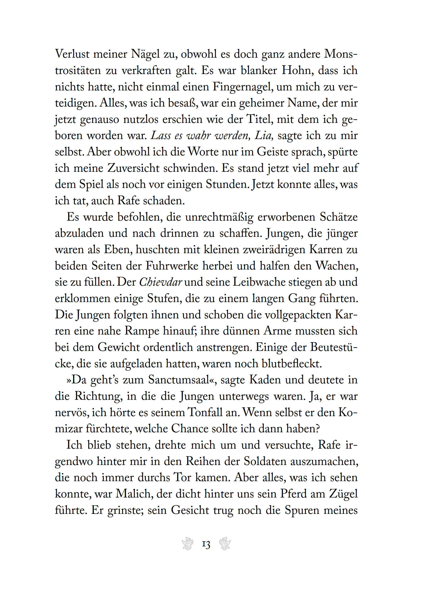 Lia wurde in den Palast von Venda verschleppt, wo sie um ihr Leben fürchten muss. Zwar ist Rafe an ihrer Seite, doch auch er kann sie unter ihren Feinden nicht beschützen. Eine Flucht wäre der einzige Ausweg, scheint jedoch unmöglich. Während Lia im Palast na...