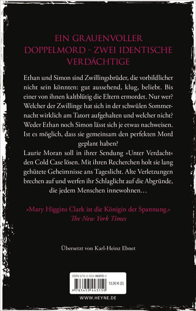 Eine grauenvolle Tat, zwei Verdächtige mit identischer DNA Sie sind Zwillingsbrüder, die vorbildlicher nicht sein könnten: gut aussehend, klug, beliebt. Bis einer von ihnen kaltblütig die Eltern ermordet. Der andere hat ein wasserdichtes Alibi. Welcher der Zwi...