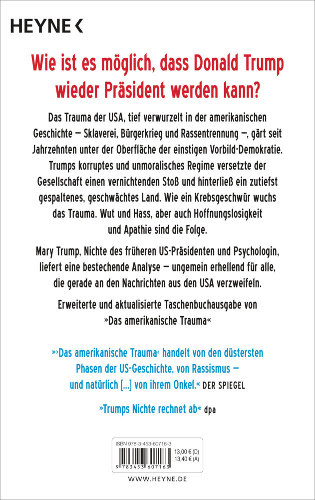 Wie ist es möglich, dass Donald Trump wieder Präsident werden kann? Die Autorin des Nr.-1-Bestsellers »Zu viel und nie genug« stellt die Diagnose für ihr zerrüttetes Land Das Trauma der USA, tief verwurzelt in der amerikanischen Geschichte Sklaverei, Bürgerkri...