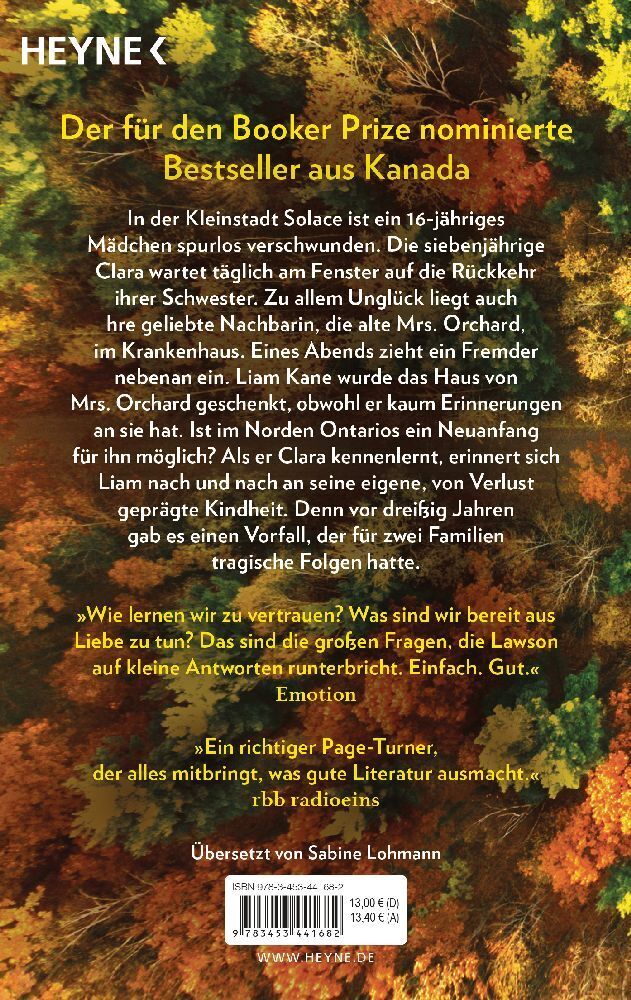 Die kanadische Bestsellerautorin verknüpft drei Schicksale zu einem hoffnungsvollen und zutiefst menschlichen Roman In der idyllischen Kleinstadt Solace ist ein Teenager spurlos verschwunden. Die siebenjährige Clara ist untröstlich und wartet seit Tagen am Fen...