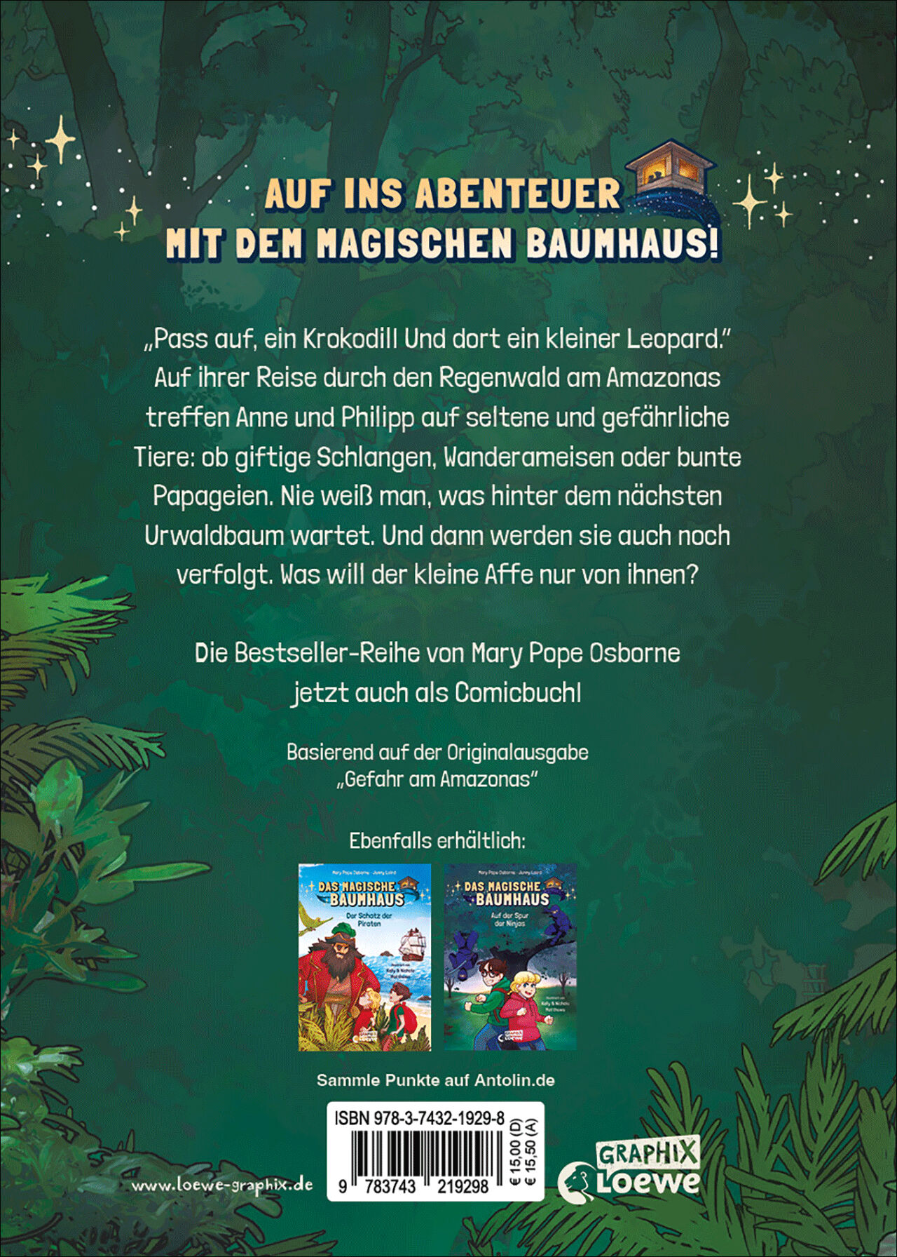 Auf ins Abenteuer mit dem magischen Baumhaus! Pass auf, ein Krokodil! Und dort ein kleiner Leopard. Auf ihrer Reise durch den Regenwald des Amazonas treffen Anne und Philipp auf seltene und gefährliche Tiere: Ob giftige Schlangen, Wanderameisen oder bunte Papa...