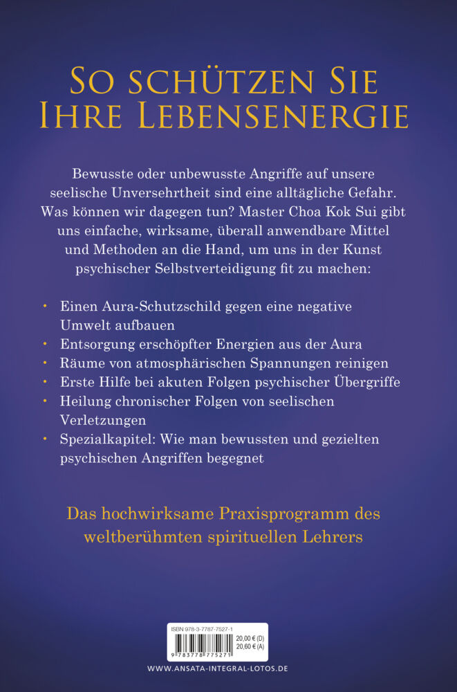 So schützen Sie Ihre Lebensenergie Bewusste oder unbewusste Angriffe auf unsere seelische Gesundheit sind eine alltägliche Gefahr. Was können wir dagegen tun? Master Choa Kok Sui gibt uns einfache, wirksame, überall anwendbare Mittel und Methoden an die Hand, ...