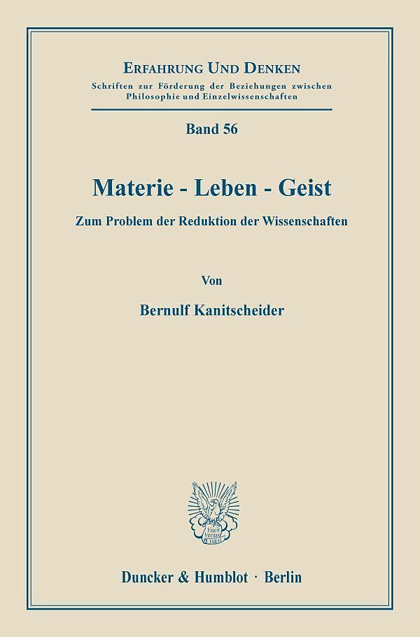 Autorentext Bernulf Kanitscheider ist Professor für Philosophie der Naturwissenschaften an der Universität Gießen und Autor zahlreicher Publikationen. Inhalt Inhalt: H. Primas / W. Gans, Quantenmechanik, Biologie und Theoriereduktion - J. Kiefer, Physik und Le...