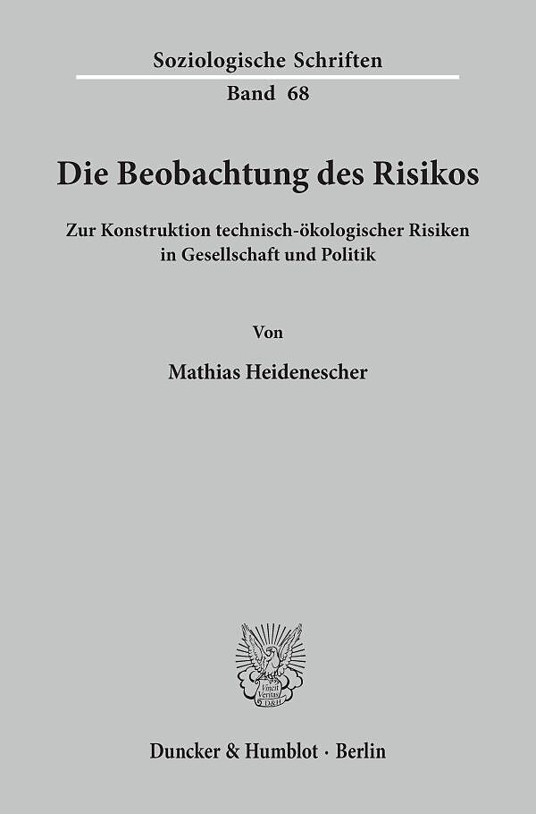 Die moderne Gesellschaft wird zunehmend unter dem Aspekt ihrer Risikopotentiale (z. B. atomare Energiegewinnung, Gentechnologie, groß-formatige Umweltverschmutzungen, BSE und AIDS) beobachtet, dies nicht zuletzt auch aufgrund der massenmedialen Darstellungen. ...