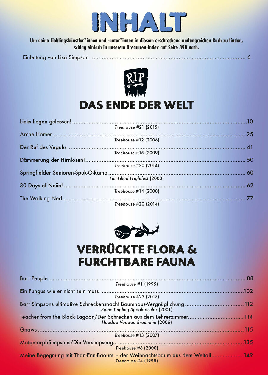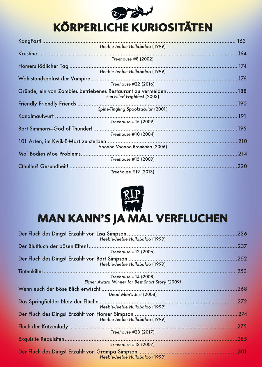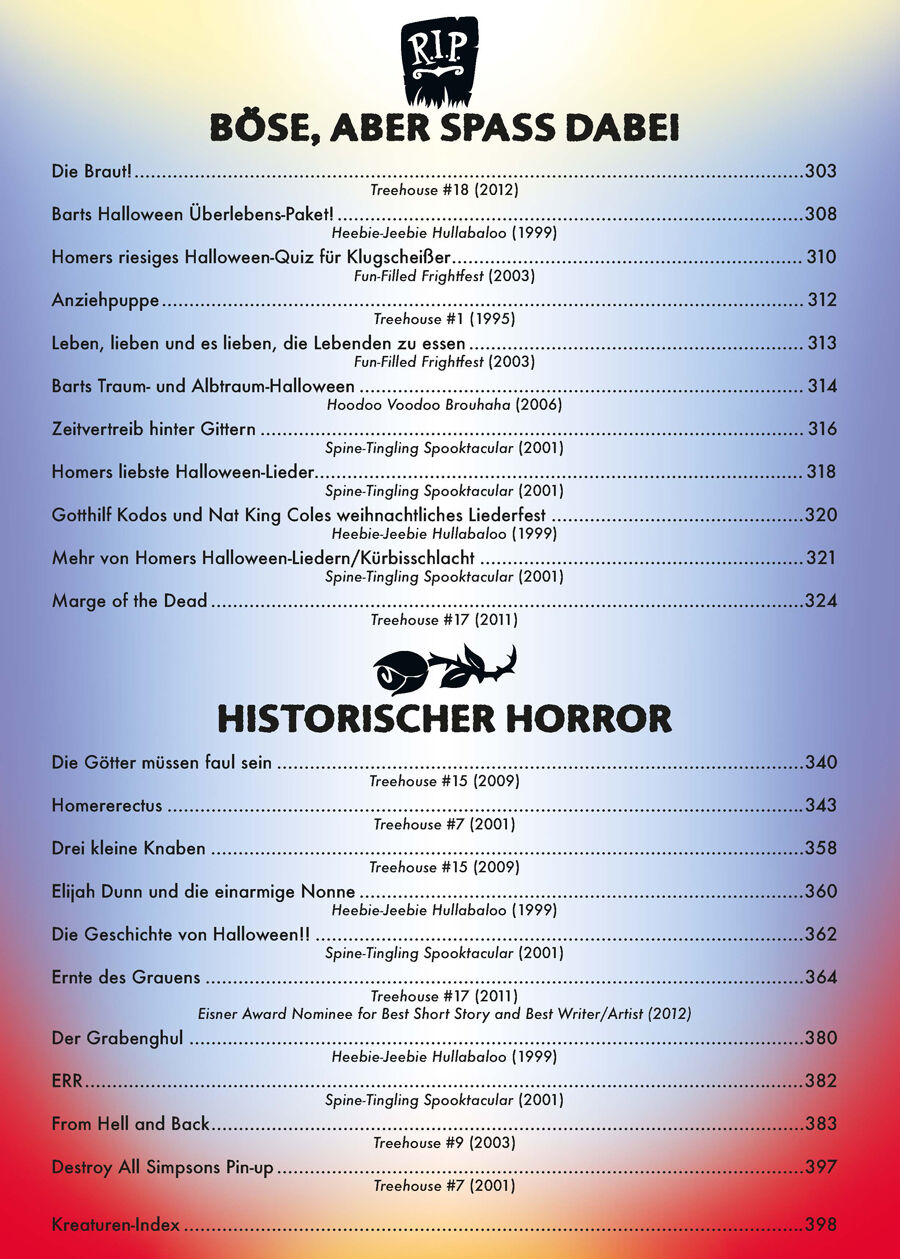 Die ultimative Gesamtausgabe der beliebten »Simpsons Treehouse of Horror«-Comics! Im »Treehouse of Horror« begann 1995 die unheimliche Verbindung des gruseligsten aller Feste und der berühmtesten aller TV-Familien unheimlich komisch und unheimlich starbesetzt!...
