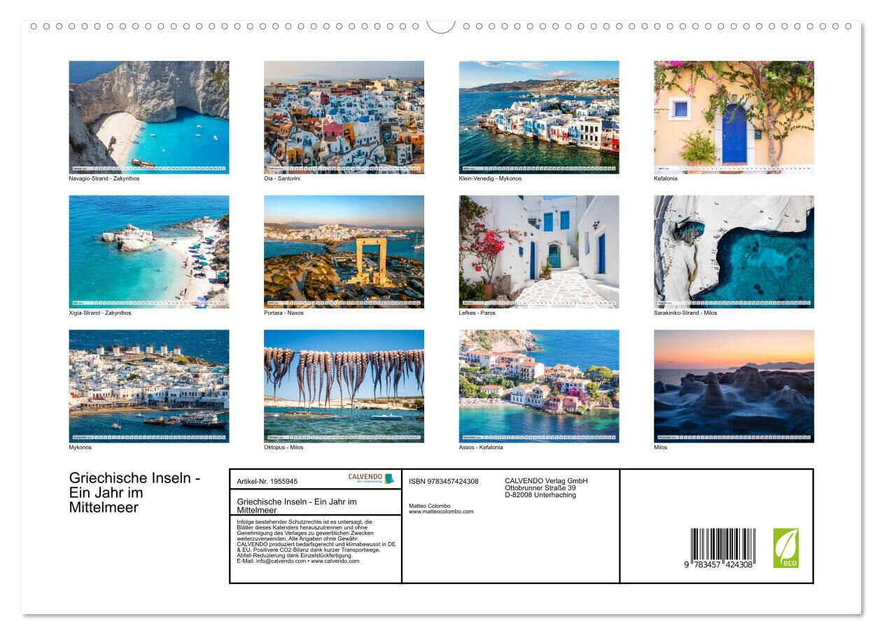 Griechische Inseln - Ein Jahr im Mittelmeer (hochwertiger Premium Wandkalender 2026 DIN A2 quer), Kunstdruck in Hochglanz