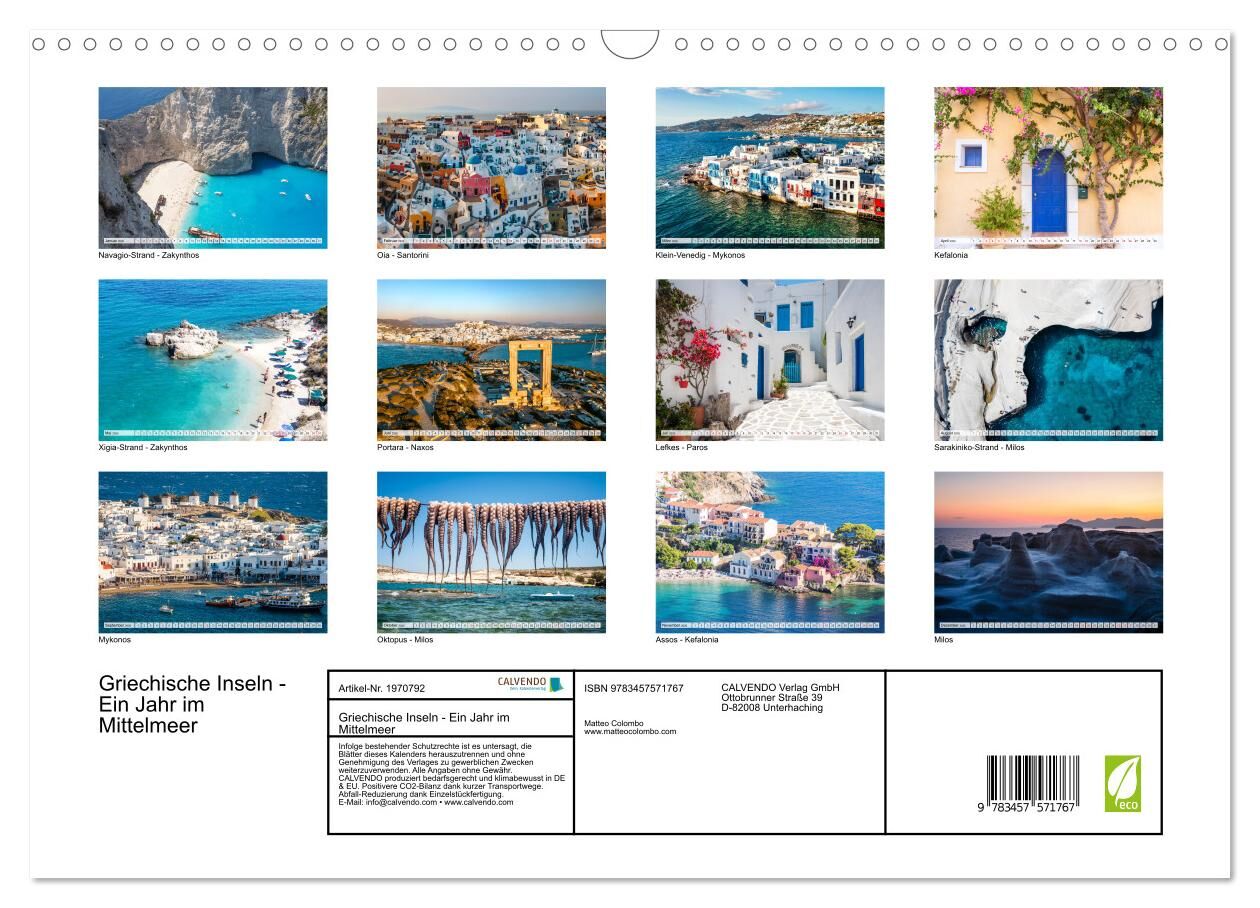 Griechische Inseln - Ein Jahr im Mittelmeer (Wandkalender 2026 DIN A3 quer), CALVENDO Monatskalender