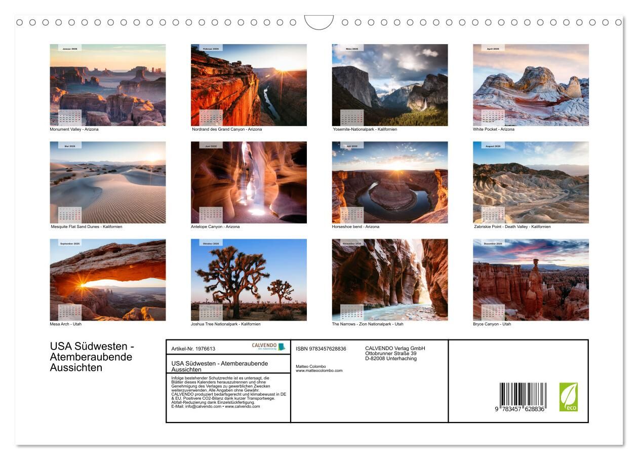 USA Südwesten - Atemberaubende Aussichten (Wandkalender 2026 DIN A3 quer), CALVENDO Monatskalender